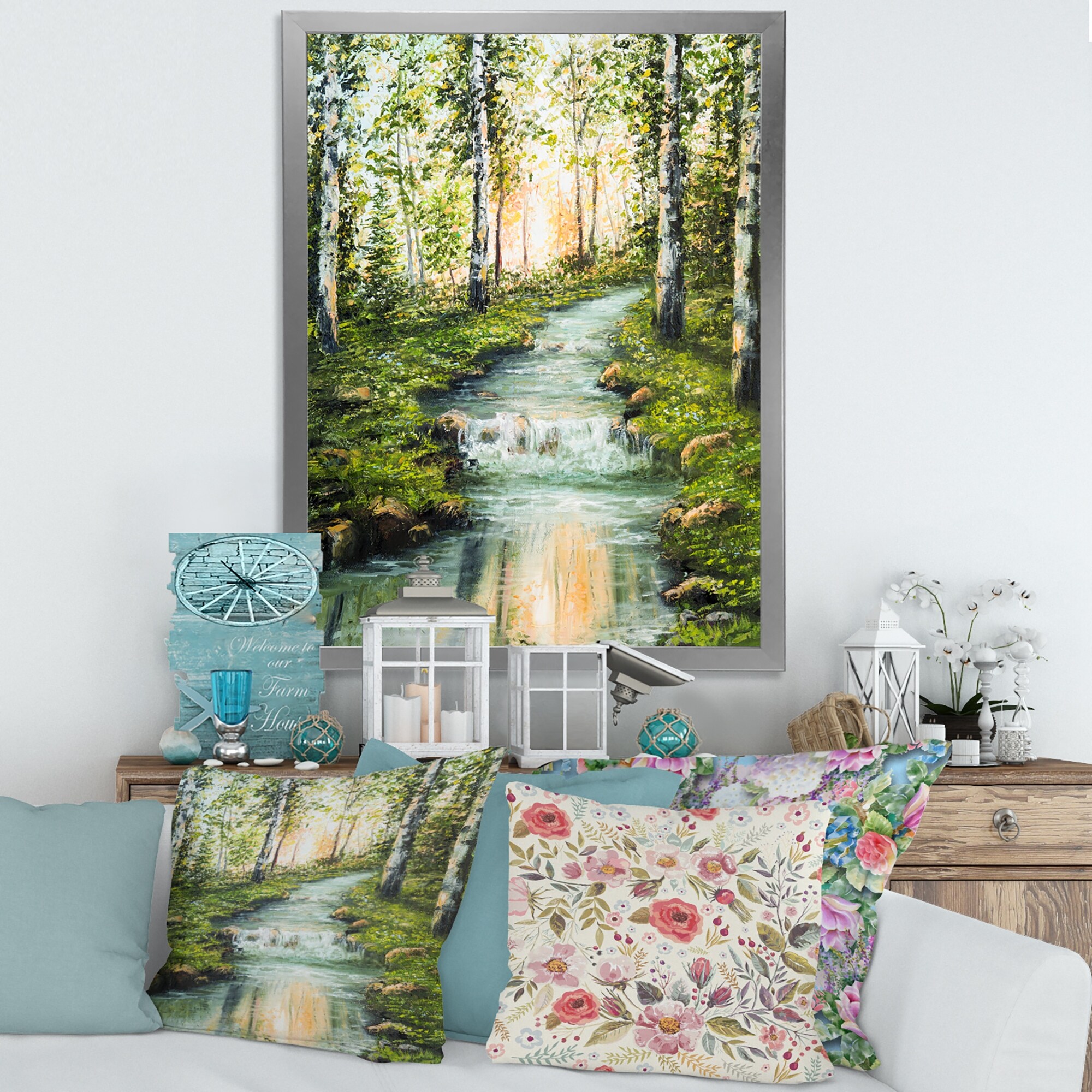 Designart "Beautiful Summer River Green Landscape II" Country Framed Art Print