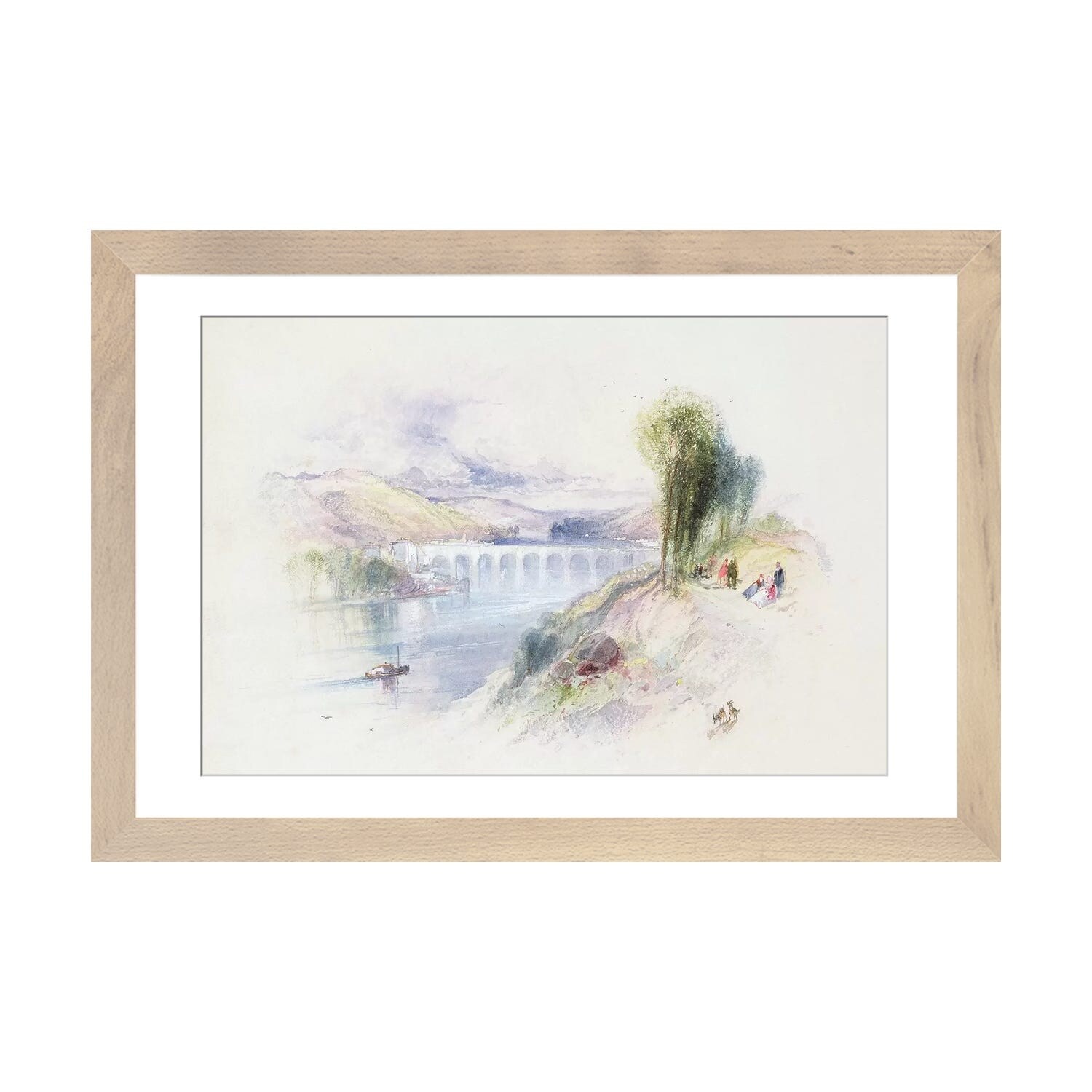 Designart "River Watercolor Landscape Illustration" Traditional Framed Art Print