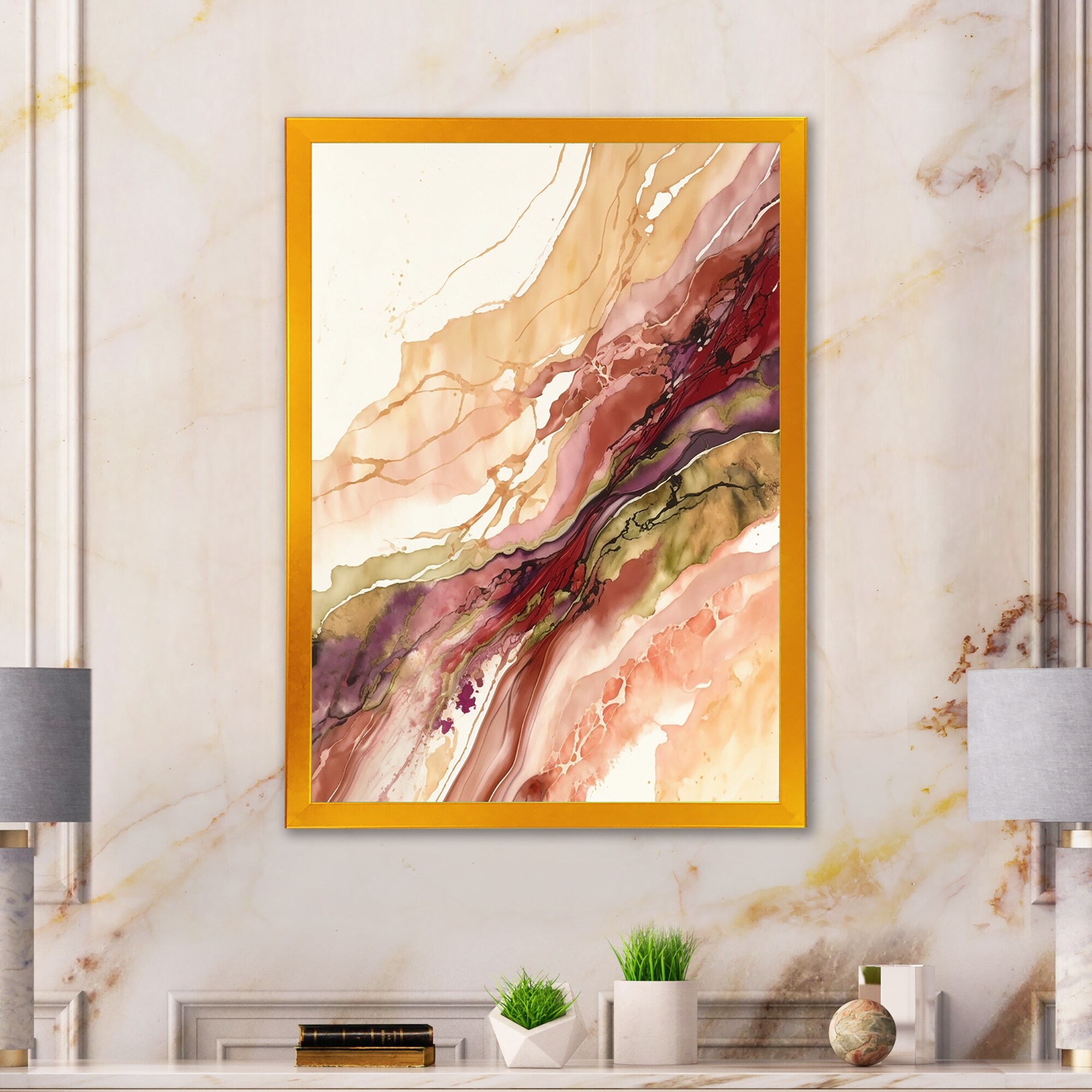 Designart "Yellow Marble River in Liquid Art Universe II" Modern Framed Canvas Wall Art Print
