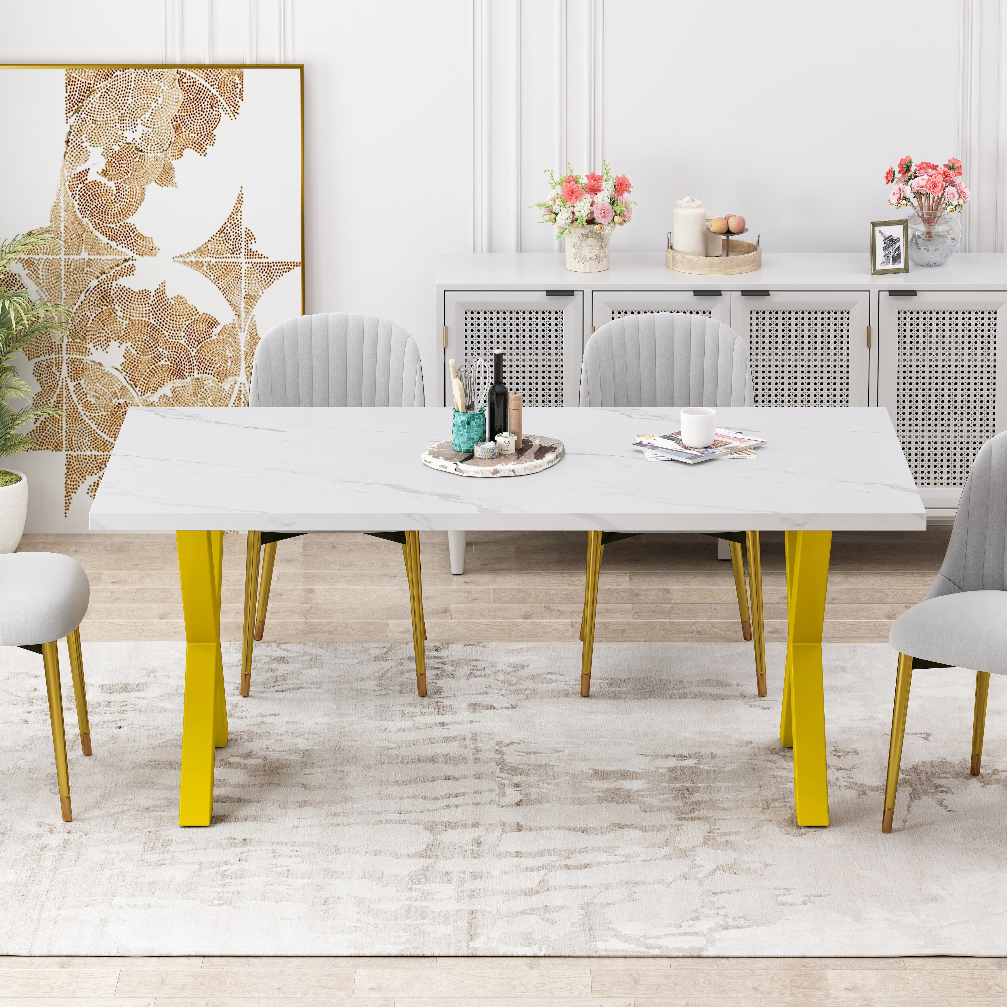 Dining Table with Printed Marble Table Top