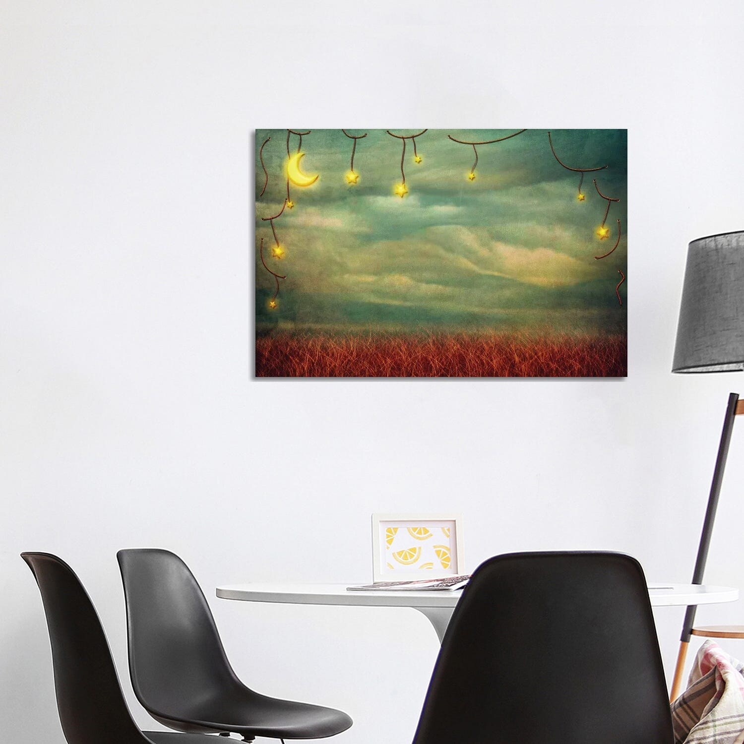 iCanvas "Stars And Moon on the Rope, Grunge Background" by natamc Canvas Print