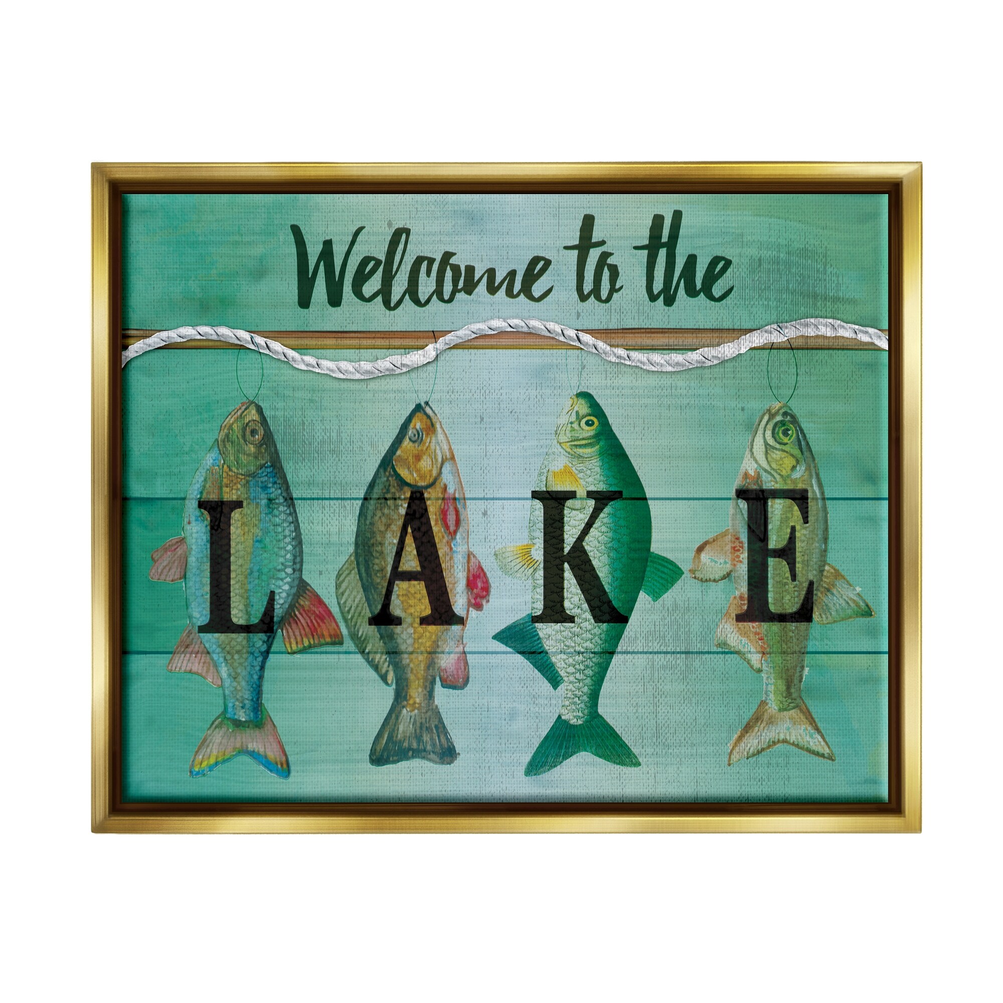 Stupell Industries Welcome to the Lake Fishing Rope Framed Floater Canvas Wall Art by ND Art