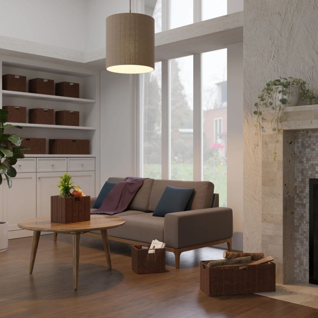 Robert Stevenson Lighting Alaina - Natural Paper Rope and Metal Ceiling Light - 14L x 14W x 76H