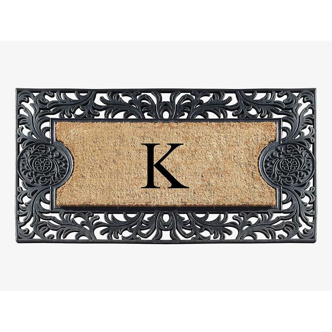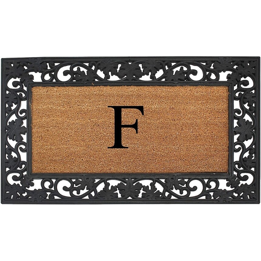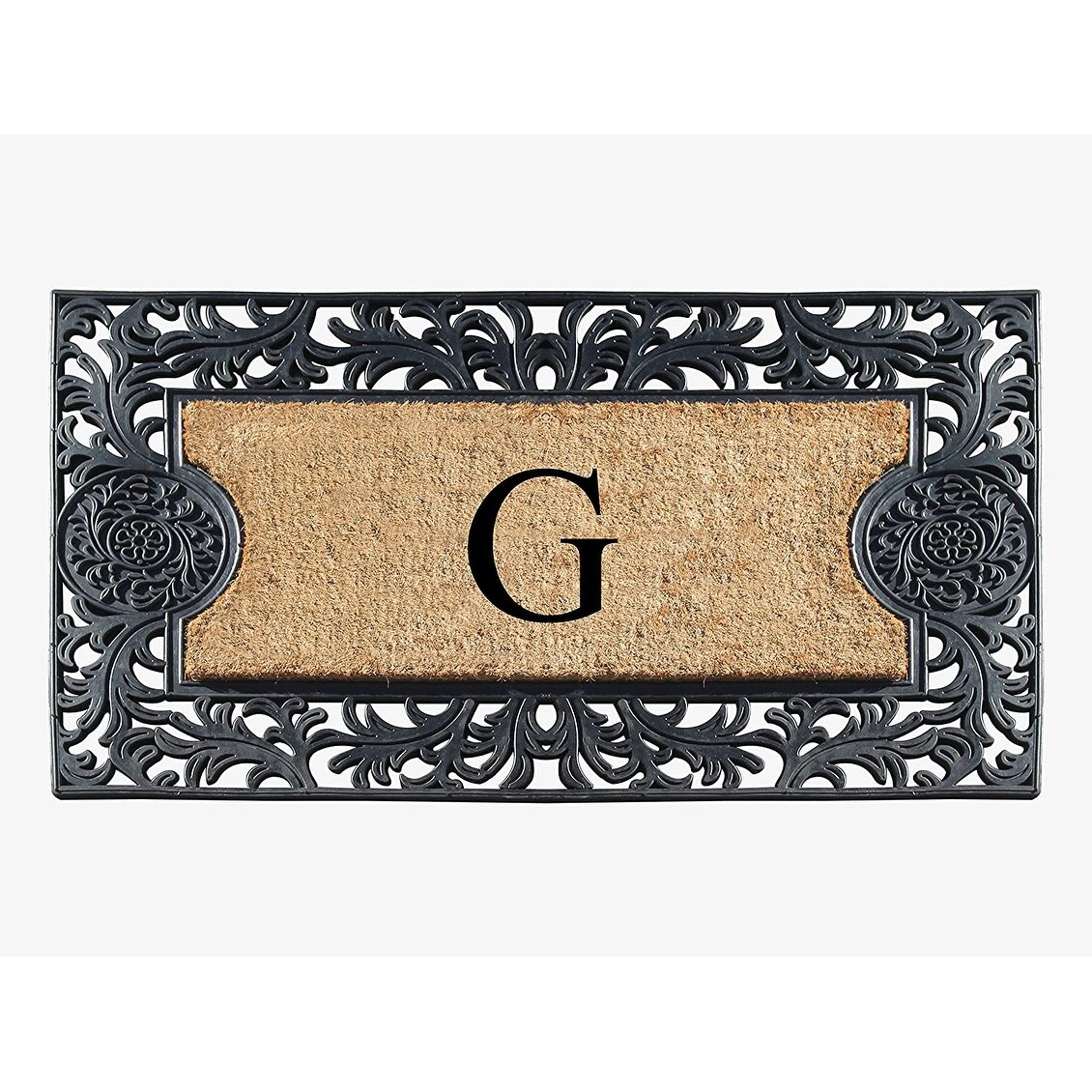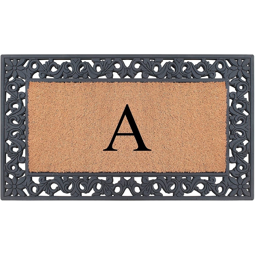 A1HC Floral Border Rubber and Coir Large Outdoor Durable Monogrammed Doormat, Black - 23" X 38"