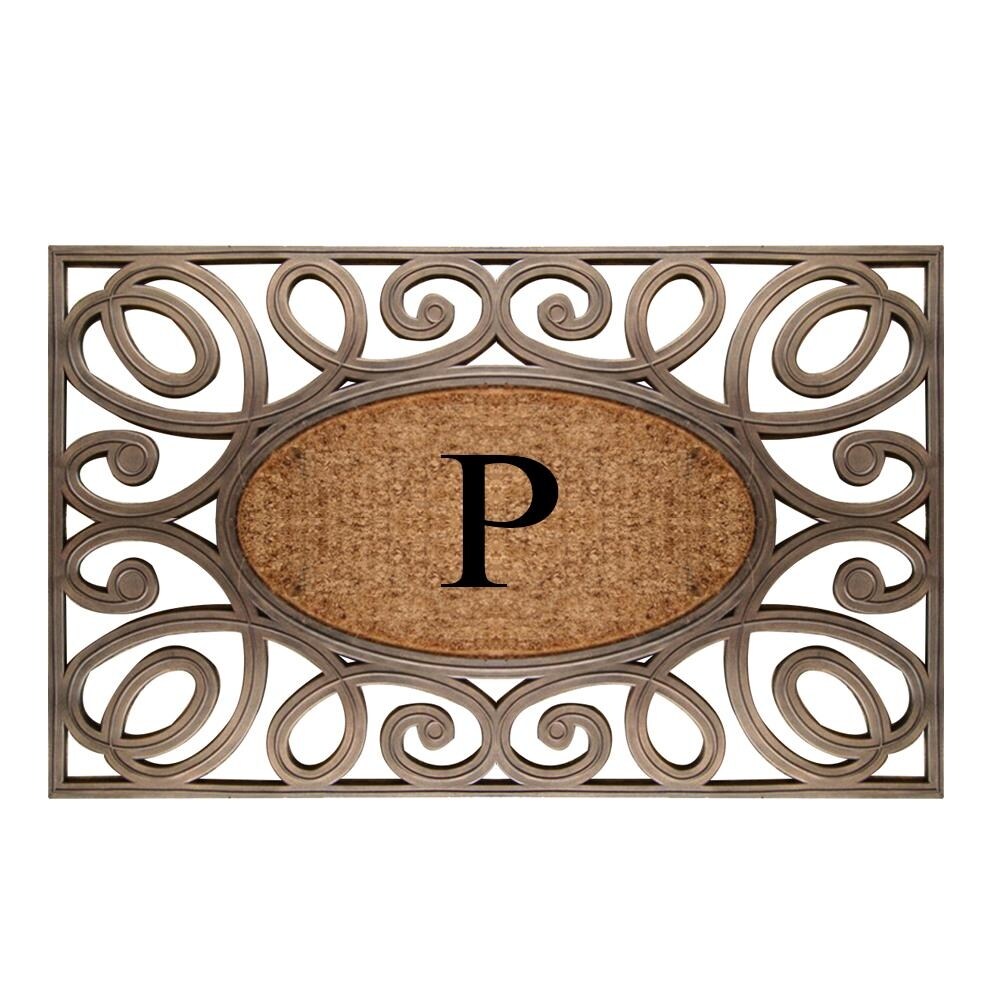 A1HC Rubber and Coir Paisley Border Myla Double Door Monogrammed Doormat Bronze
