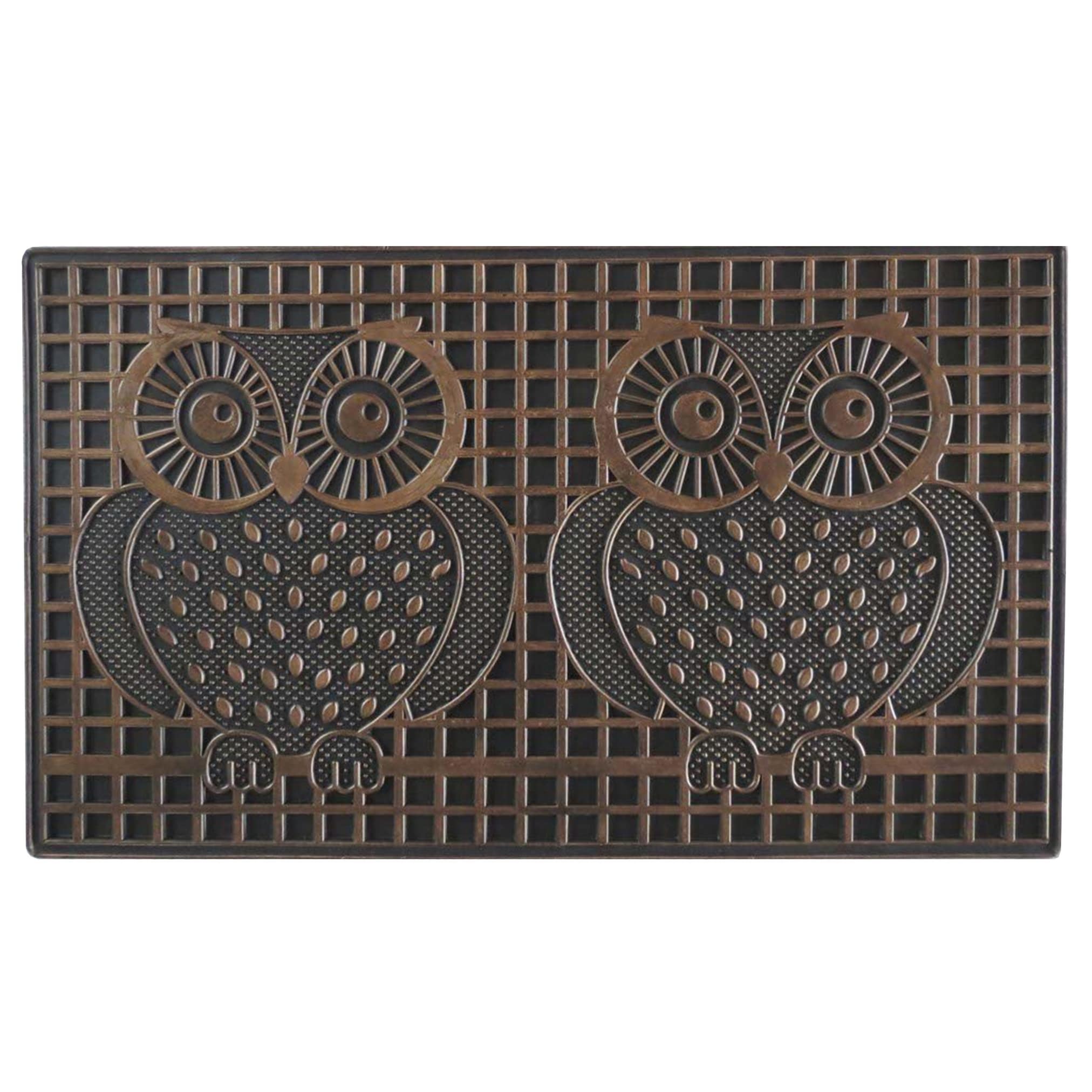 Rubber Pin 'Twin Owls' Doormat 18" L X 30" W
