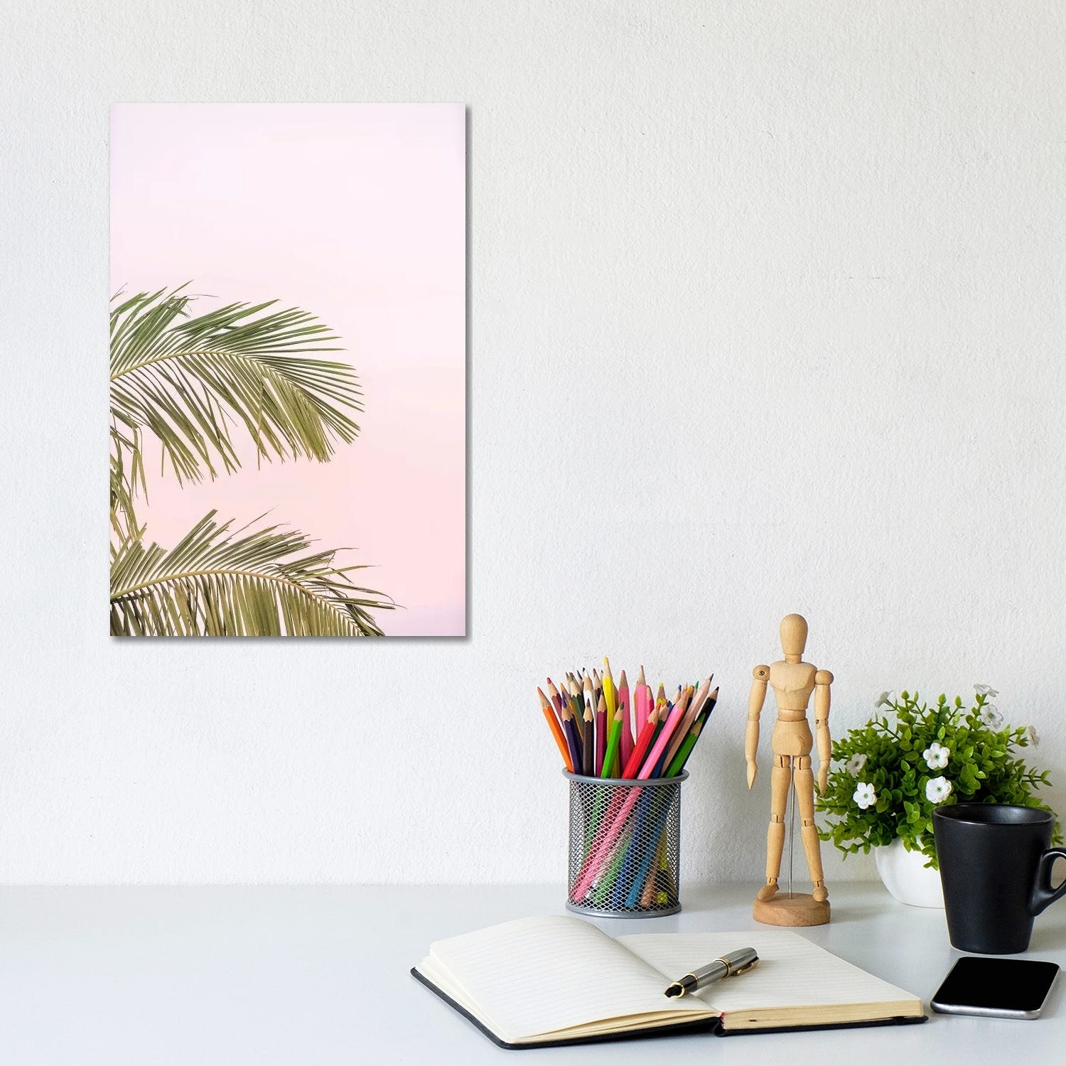 iCanvas "Pink And Green Palm Tree" by Ruby and B Canvas Print