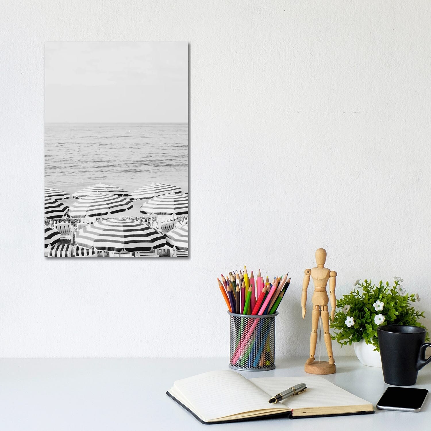 iCanvas "Riviera Umbrellas Black And White" by Ruby and B Canvas Print