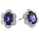 925 Sterling Silver African Amethyst and Created White Sapphire Stud Earrings
