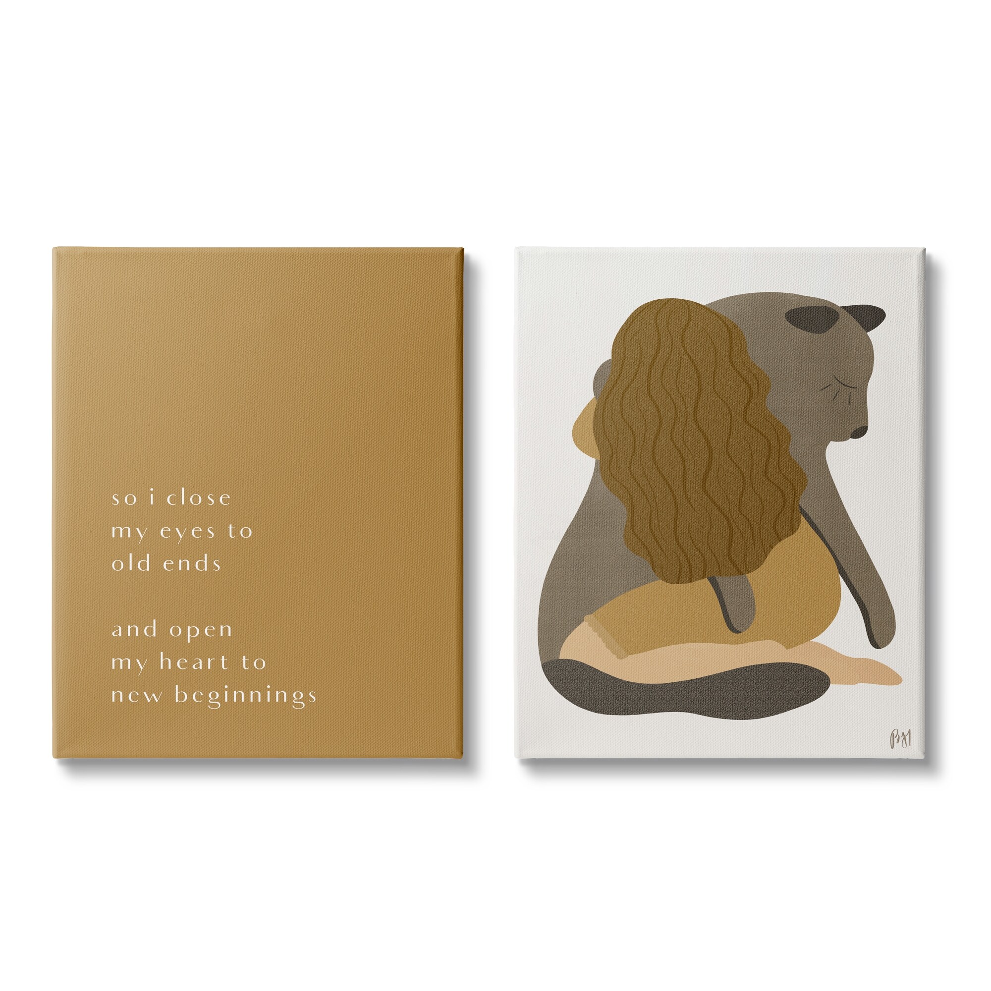 Stupell Open Heart New Beginnings Phrase Woman Hugging Seal 2pc Multi Piece Canvas Wall Art Set - Brown