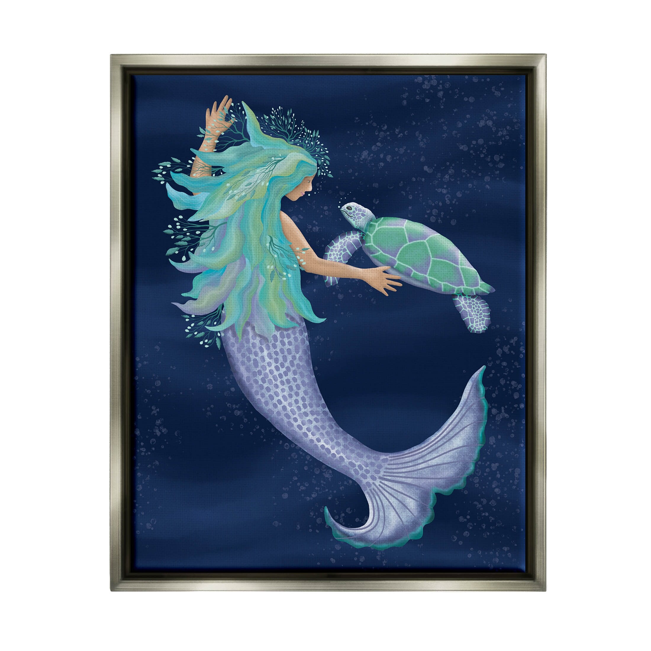 Stupell Nautical Mermaid Swimming Tortoise Floater Canvas Wall Art by Darlene Seale