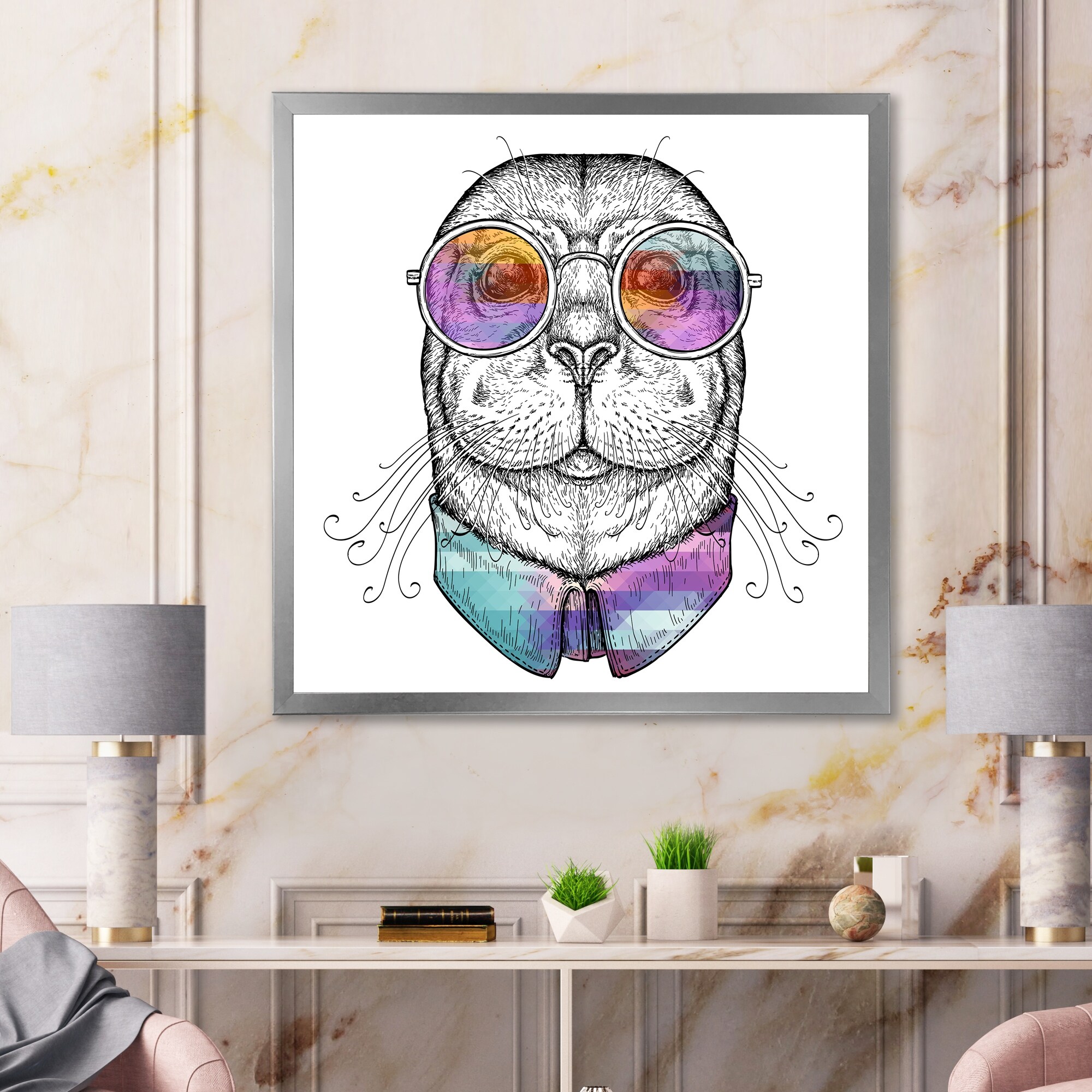 Designart "Colorful Portrait Funny Seal" Children's Art Framed Art Print