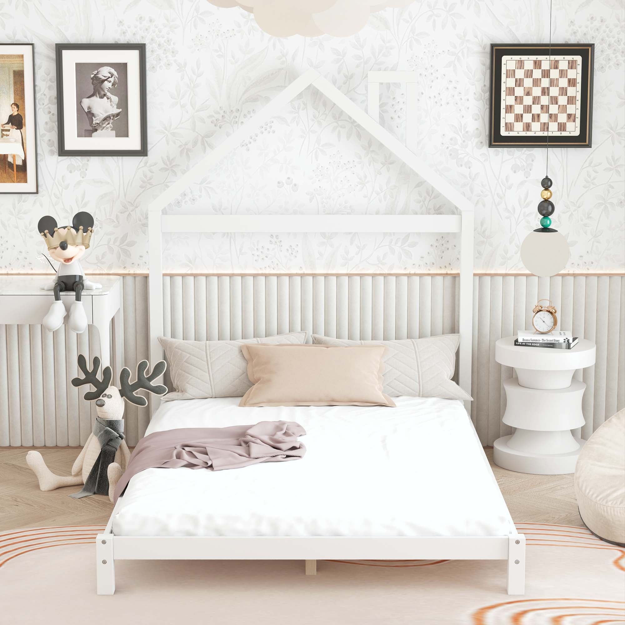 Full Size Wood Platform Bed with House-shaped Headboard