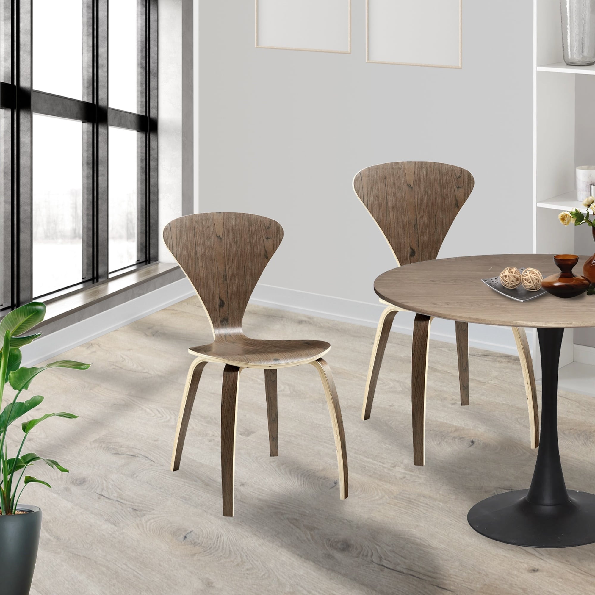 Boise Dark Walnut Wooden V-shaped Dining Chair