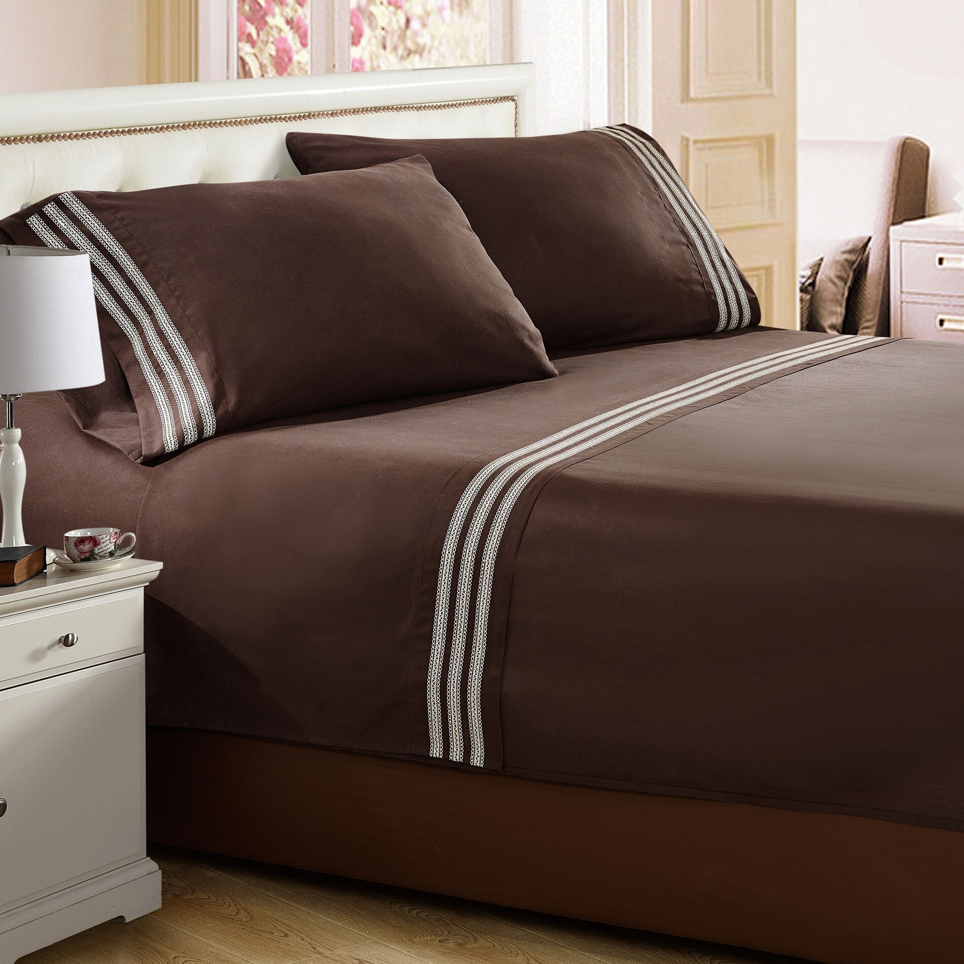 Premium Embroidered 4 Piece Microfiber Bed Sheet Set