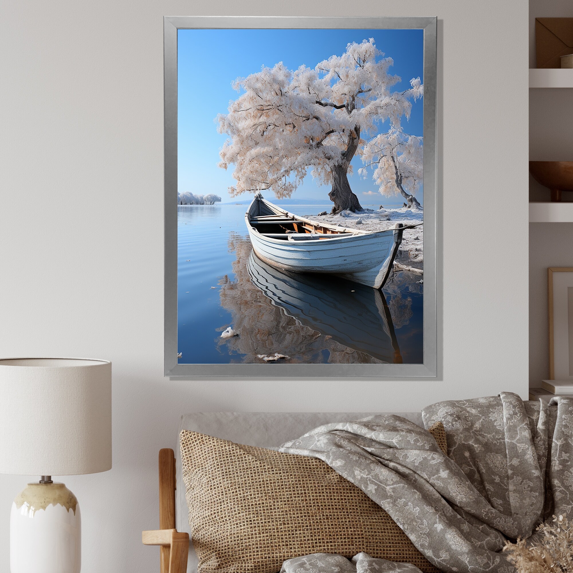 Designart "White Lake Silent Waters II" Lake House Cottage Framed Canvas Wall Art