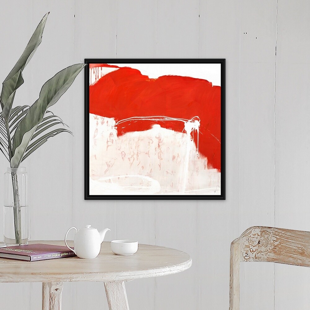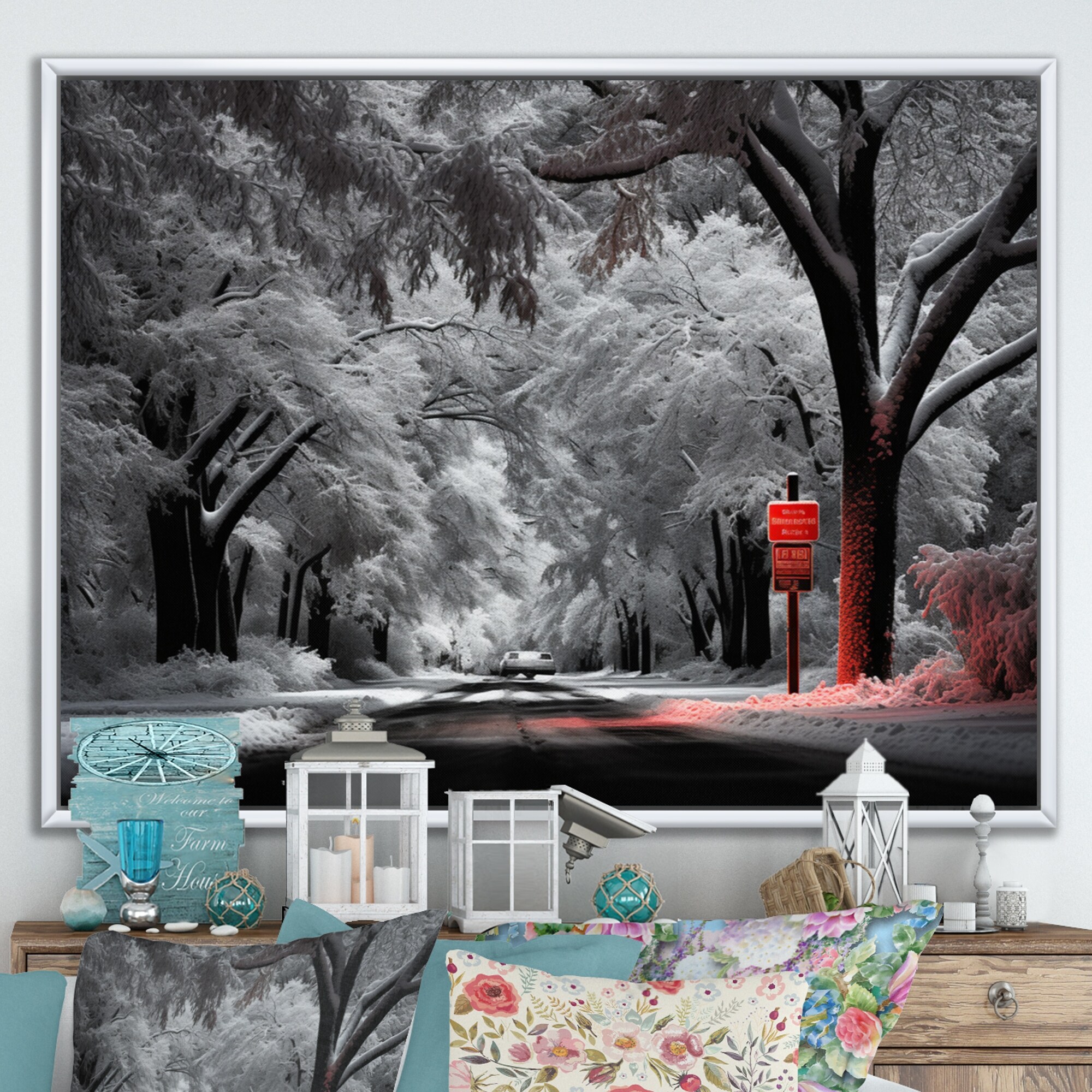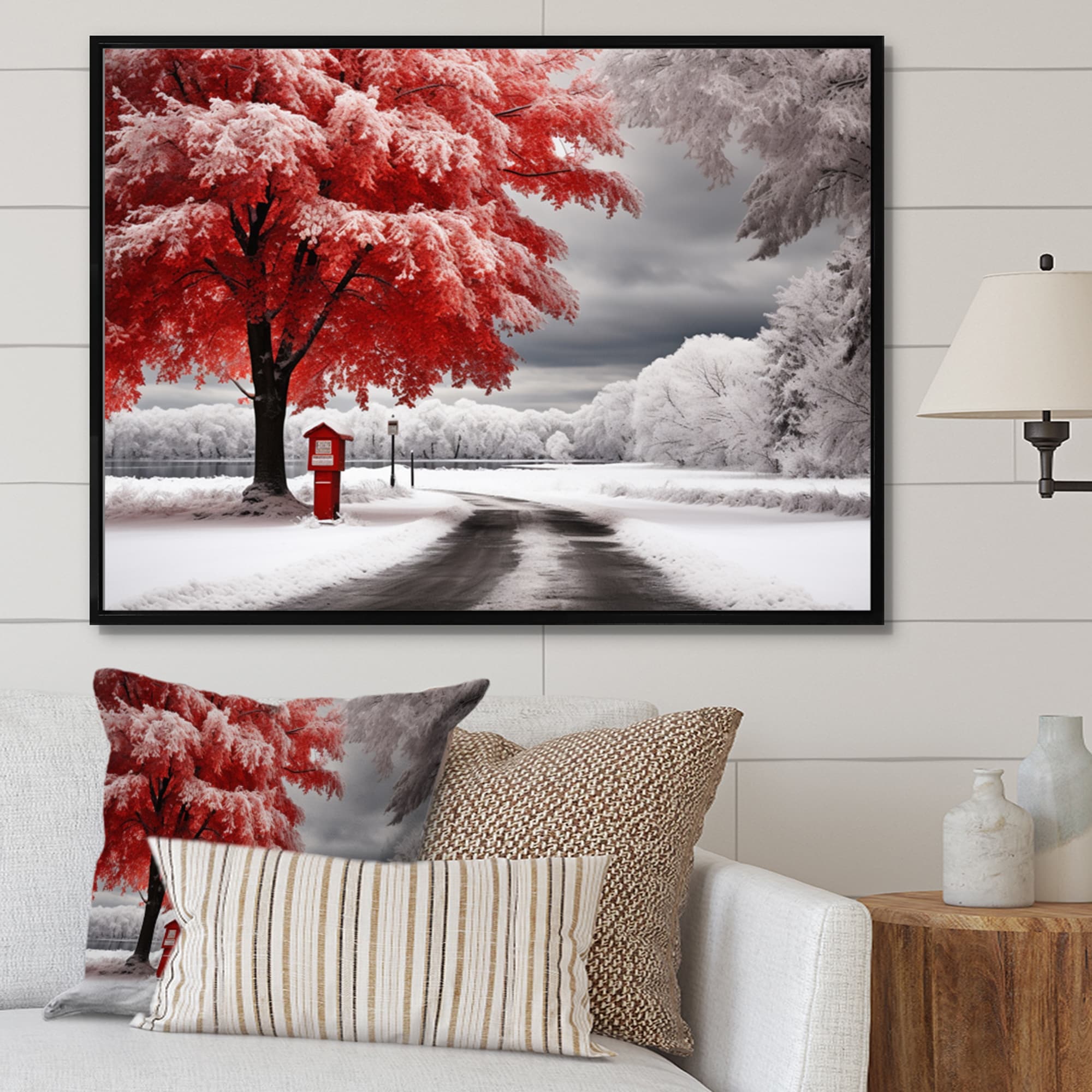 Designart "Red And White Winter Silent Symphony I" Winter Landscape Framed Canvas Wall Art
