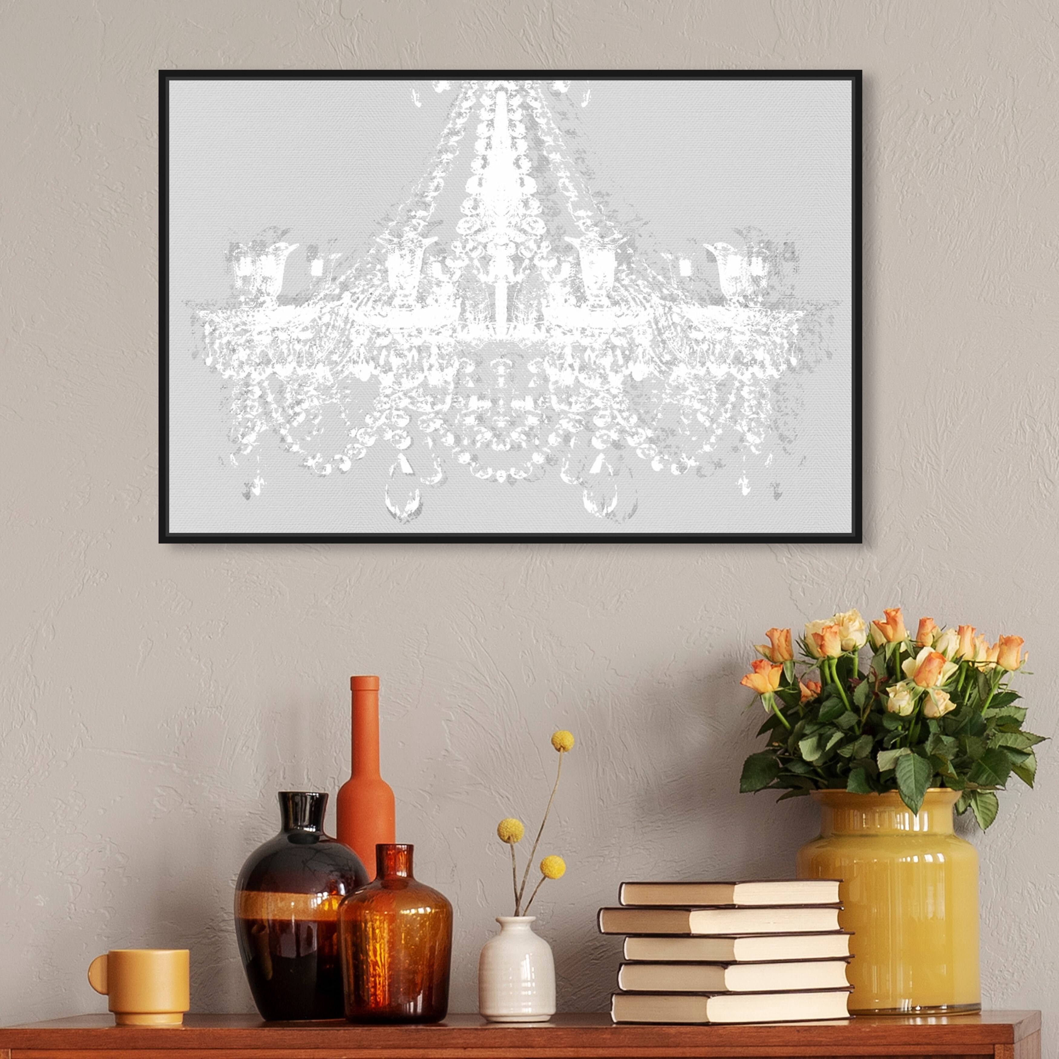 Oliver Gal 'Dramatic Entrance Silent Gray' Fashion and Glam Wall Art Framed Canvas Print Chandeliers - White, Gray