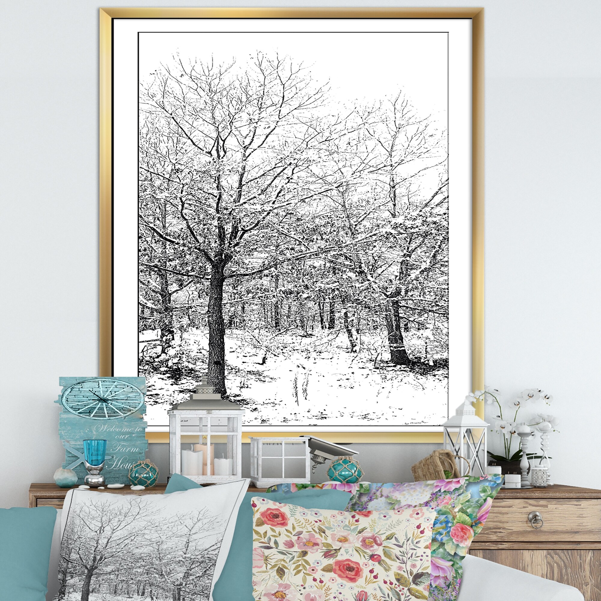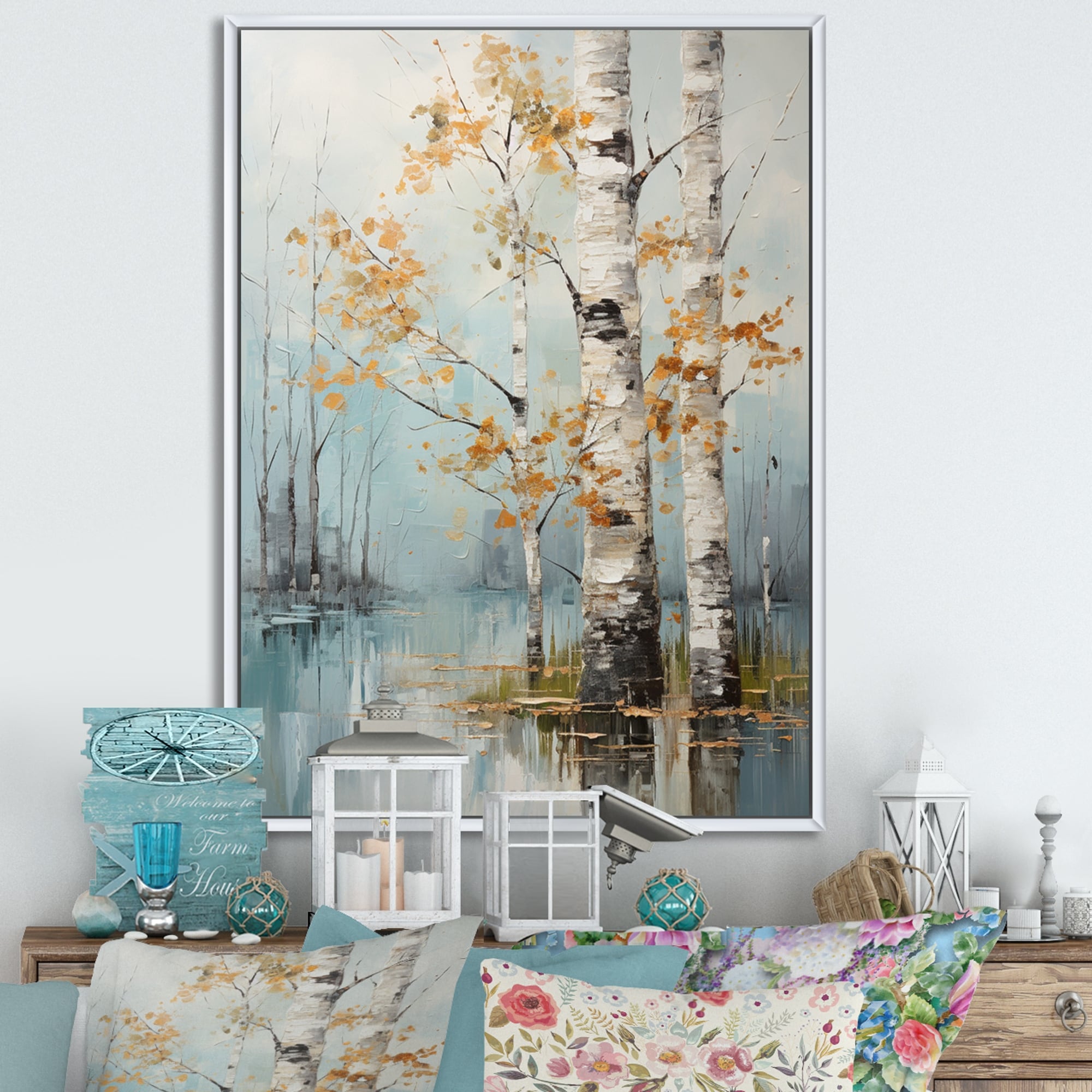 Designart "Birch Woods Silent Woods VI" Tree Birch Framed Wall Art Living Room