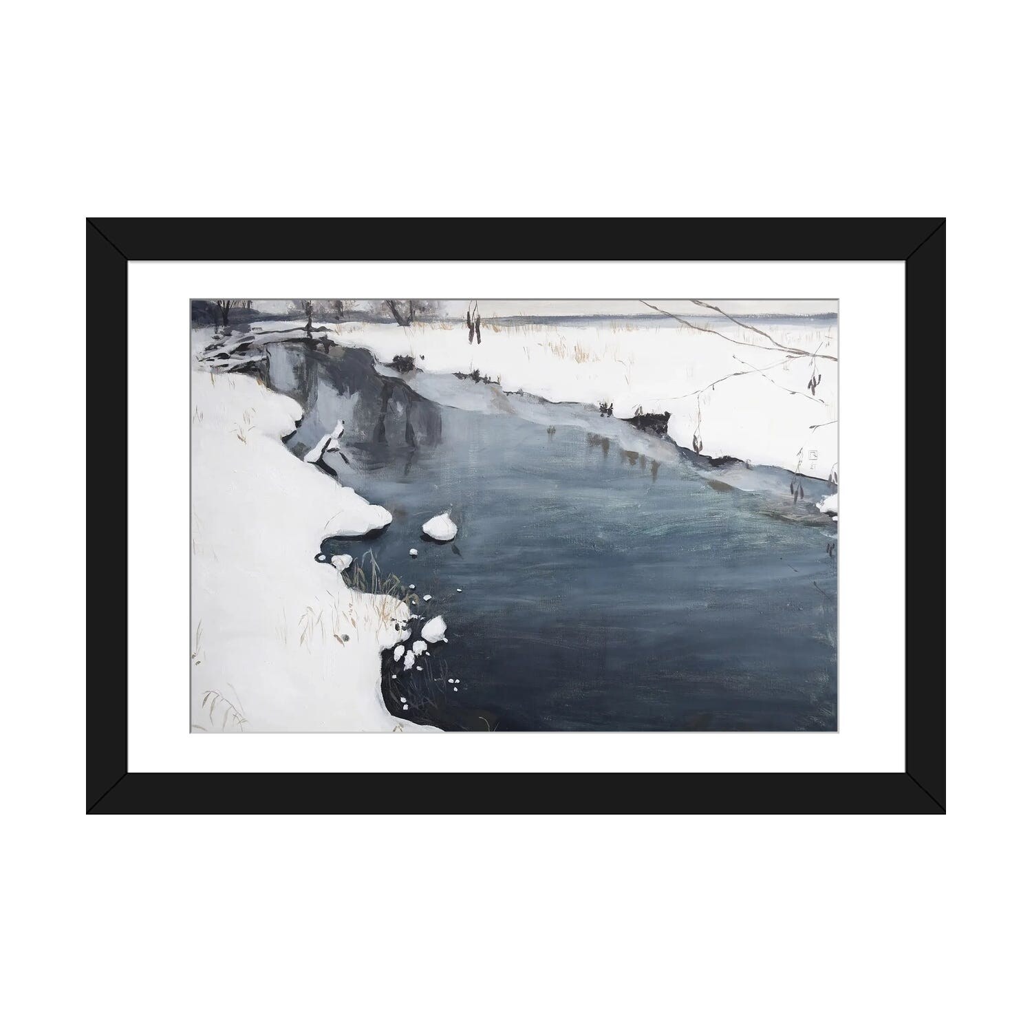 Designart "Winter'S Silente River" Snow Framed Canvas Print