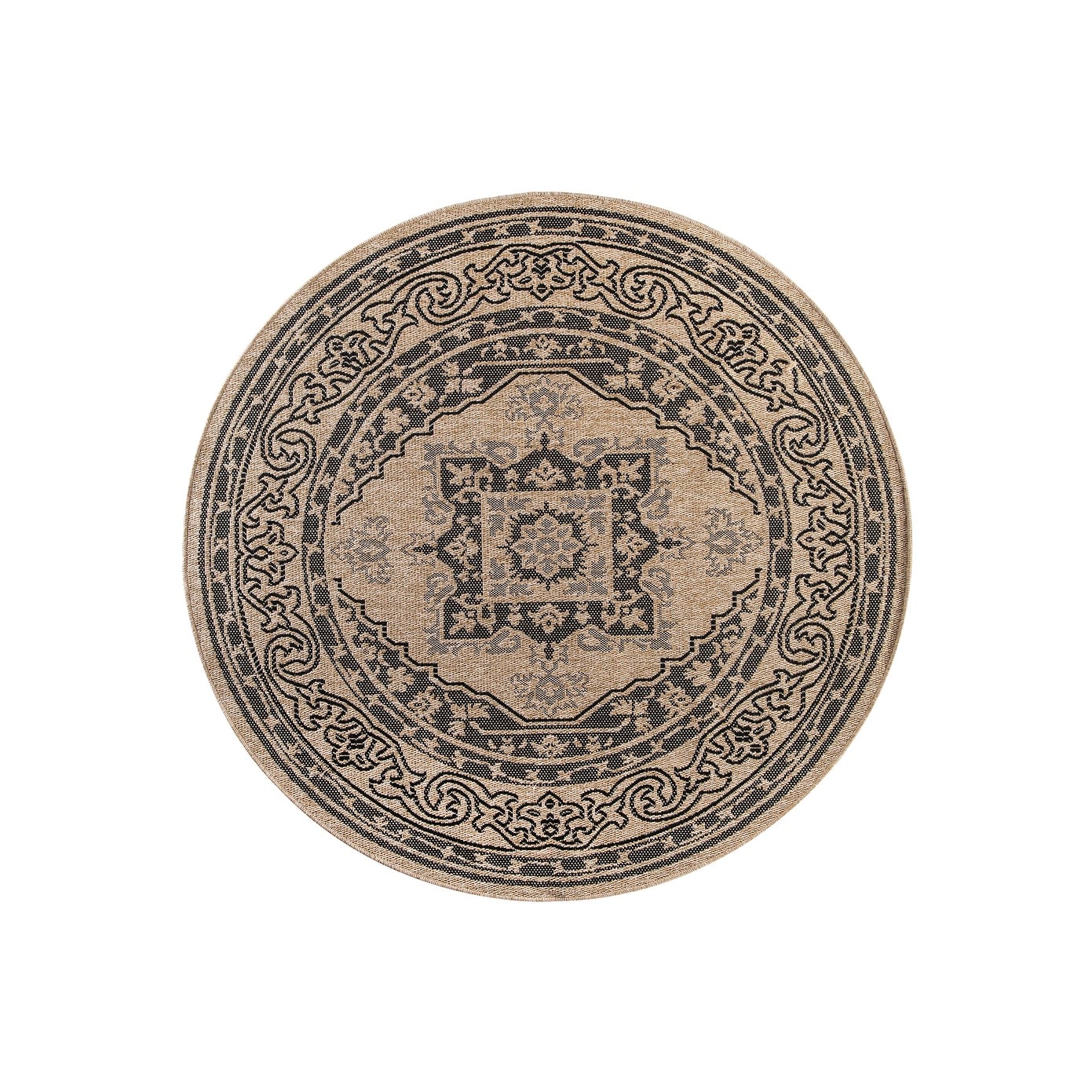 GAD - Classical Sisal-Inspired Indoor Outdoor Area Rug, Medallion, Bordered, Geometric Pattern, Fade and Stain Resistant