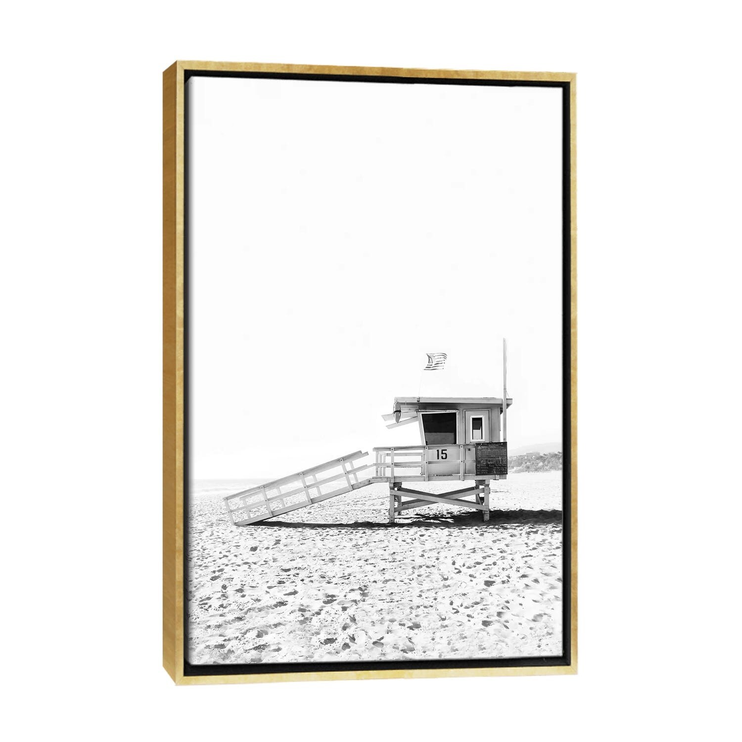 iCanvas "Lifeguard Hut in Black & White" by Sisi & Seb Framed Canvas Print