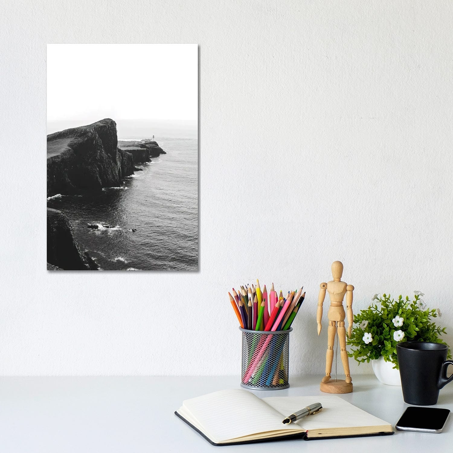 iCanvas "Black And White Lighthouse on the Coast of the Isle of Skye in Scotland" by Michael Schauer Canvas Print