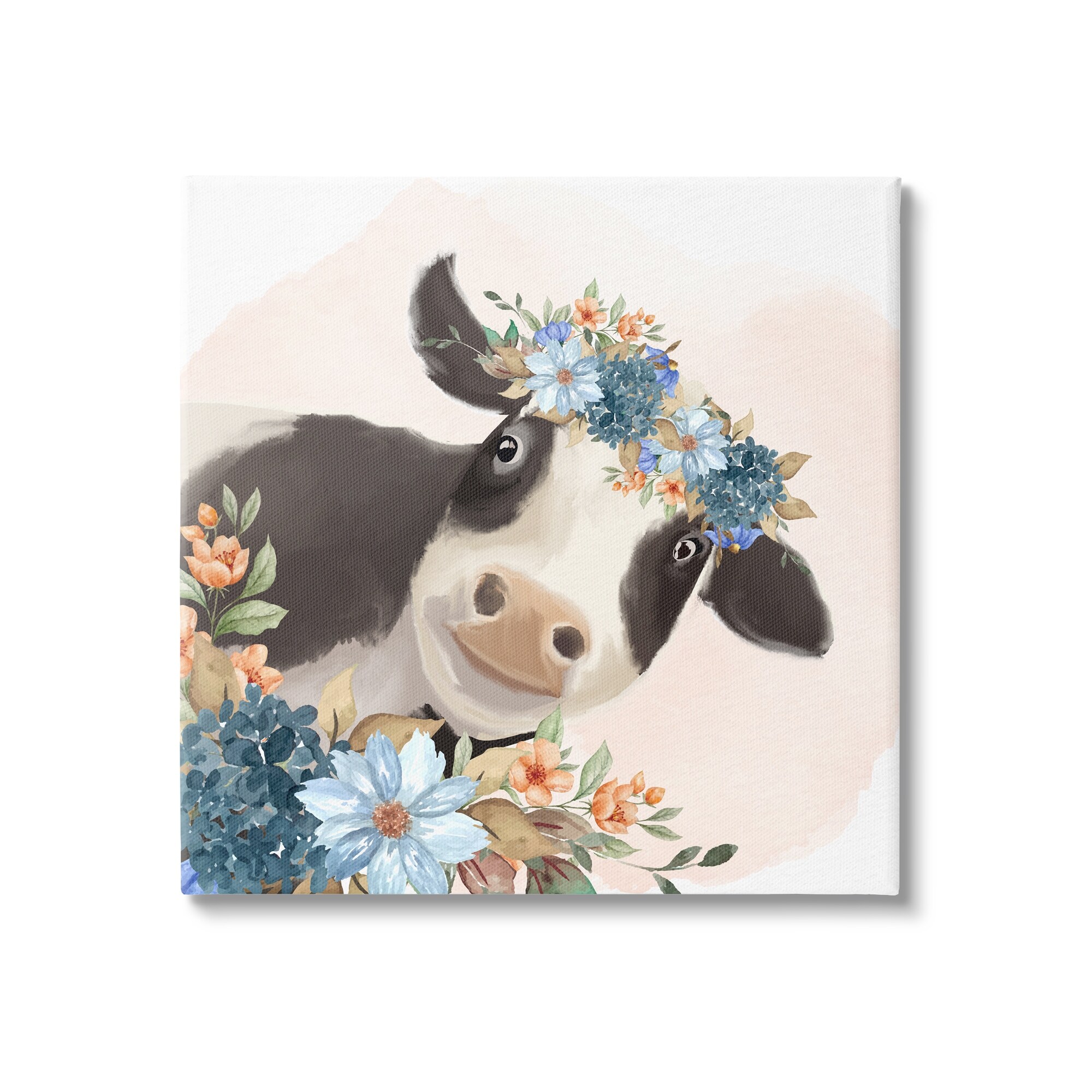 Stupell Cute Daisy Blossoms Flower Crown Smiling Cow Canvas Wall Art