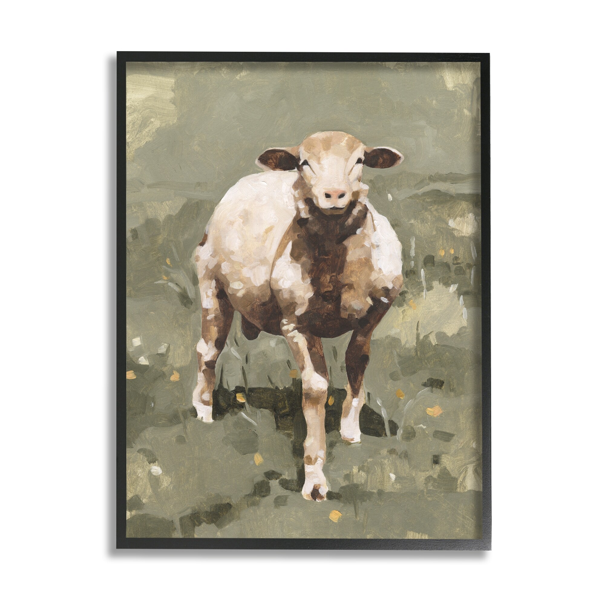 Stupell Smiling Spring Sheep Green Dandelion Farm Field Framed Wall Art