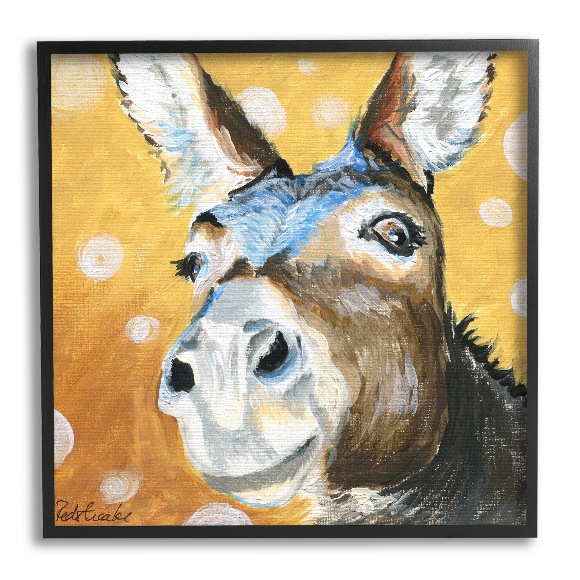 Stupell Smiling Donkey Animal Painting Casual Circle Pattern Framed Wall Art, Design by Jennifer Redstreake
