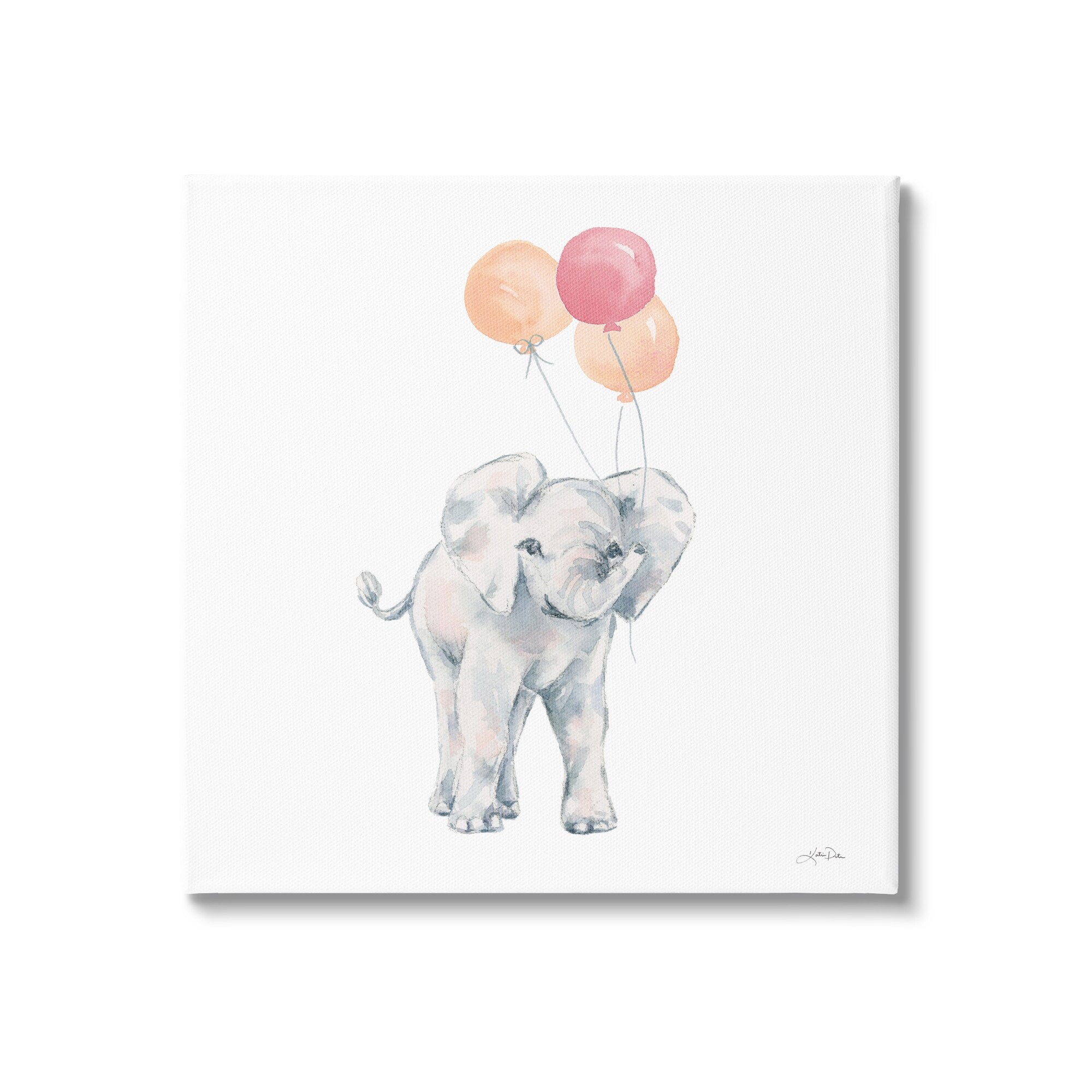 Stupell Smiling Elephant Orange Balloons Stretched Canvas Wall Art, Design by Katina Pete