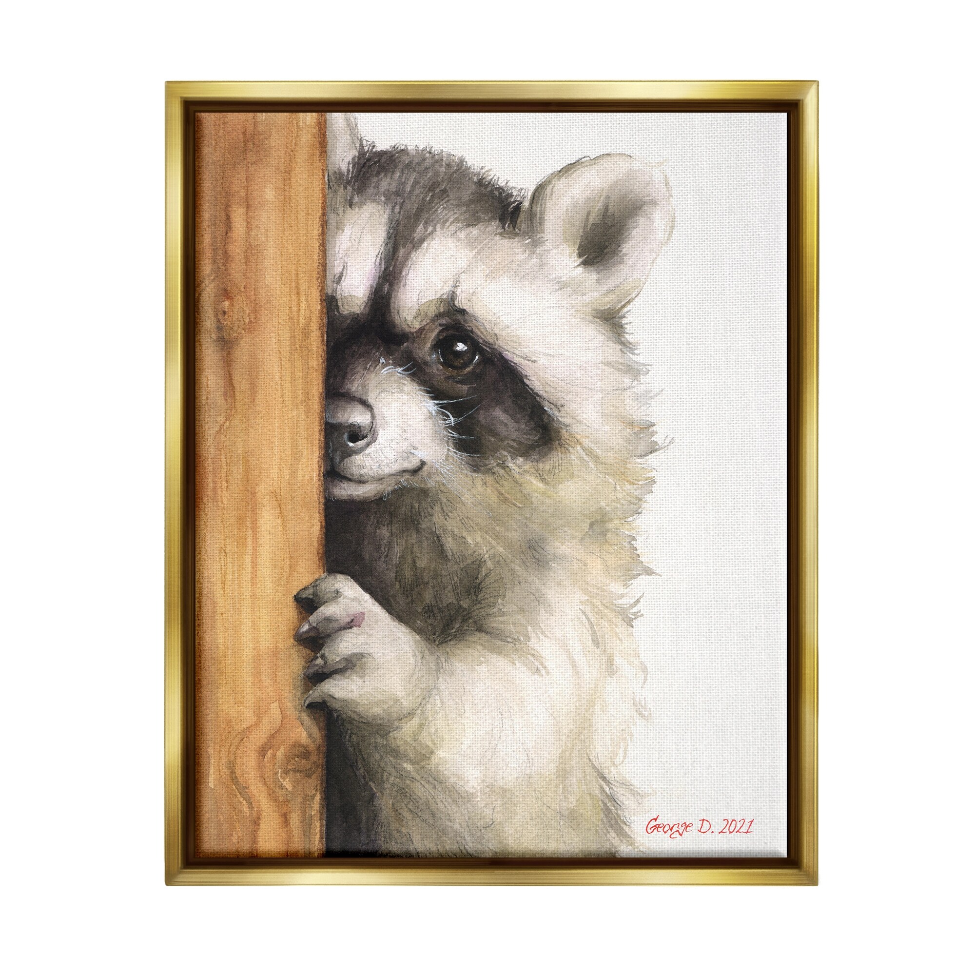 Stupell Peering Raccoon Cute Smile Watercolor Animal Painting Floater Frame, Design by George Dyachenko