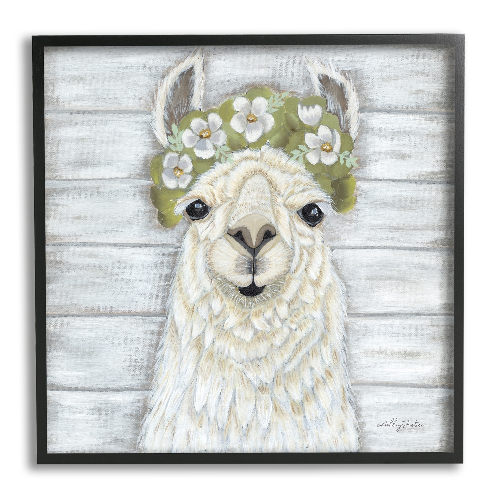 Stupell Industries Smiling Llama Country Floral Blooms Framed Giclee Art by Ashley Justice