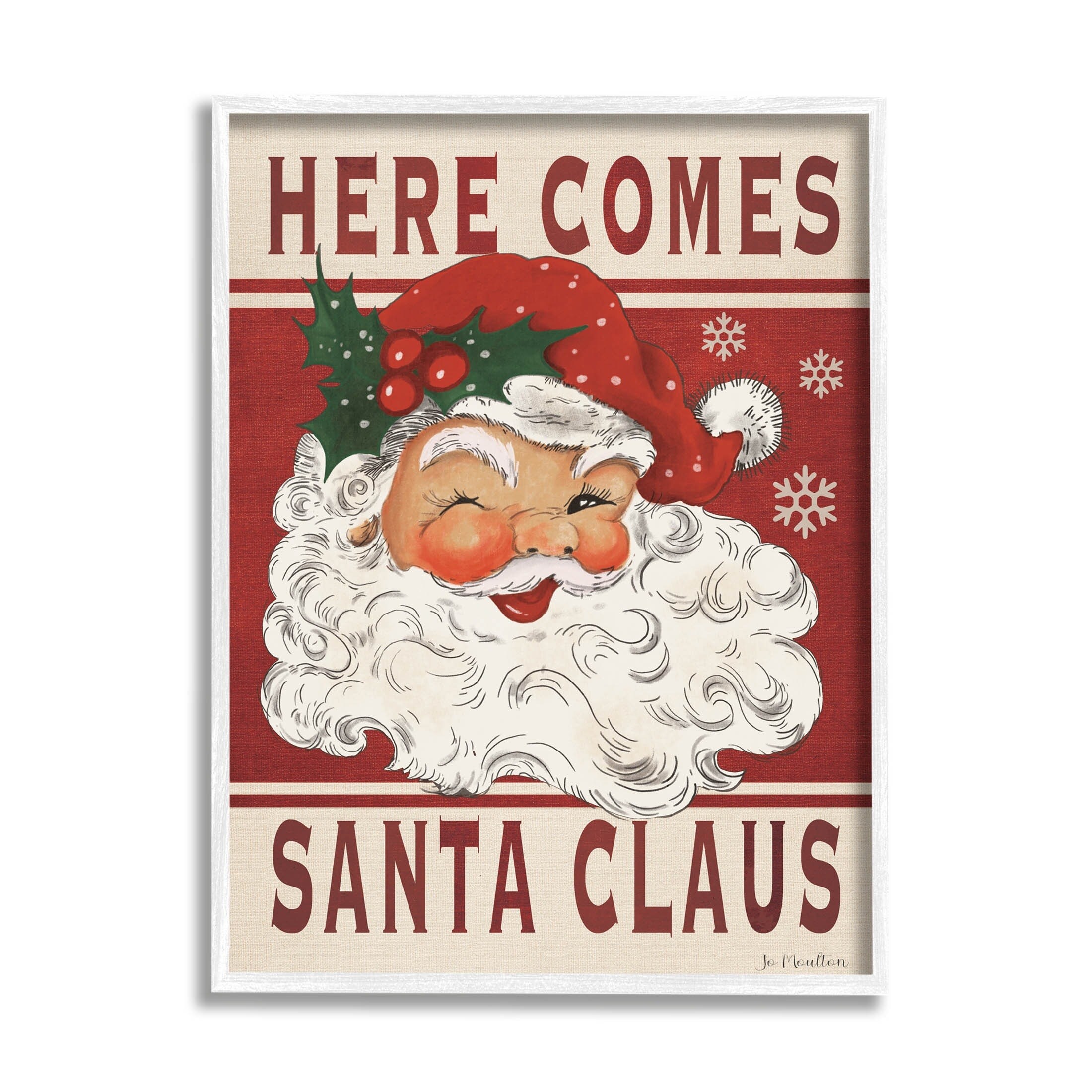 Stupell Industries Here Comes Santa Claus Smiling Vintage Framed Giclee Art by Jo Moulton