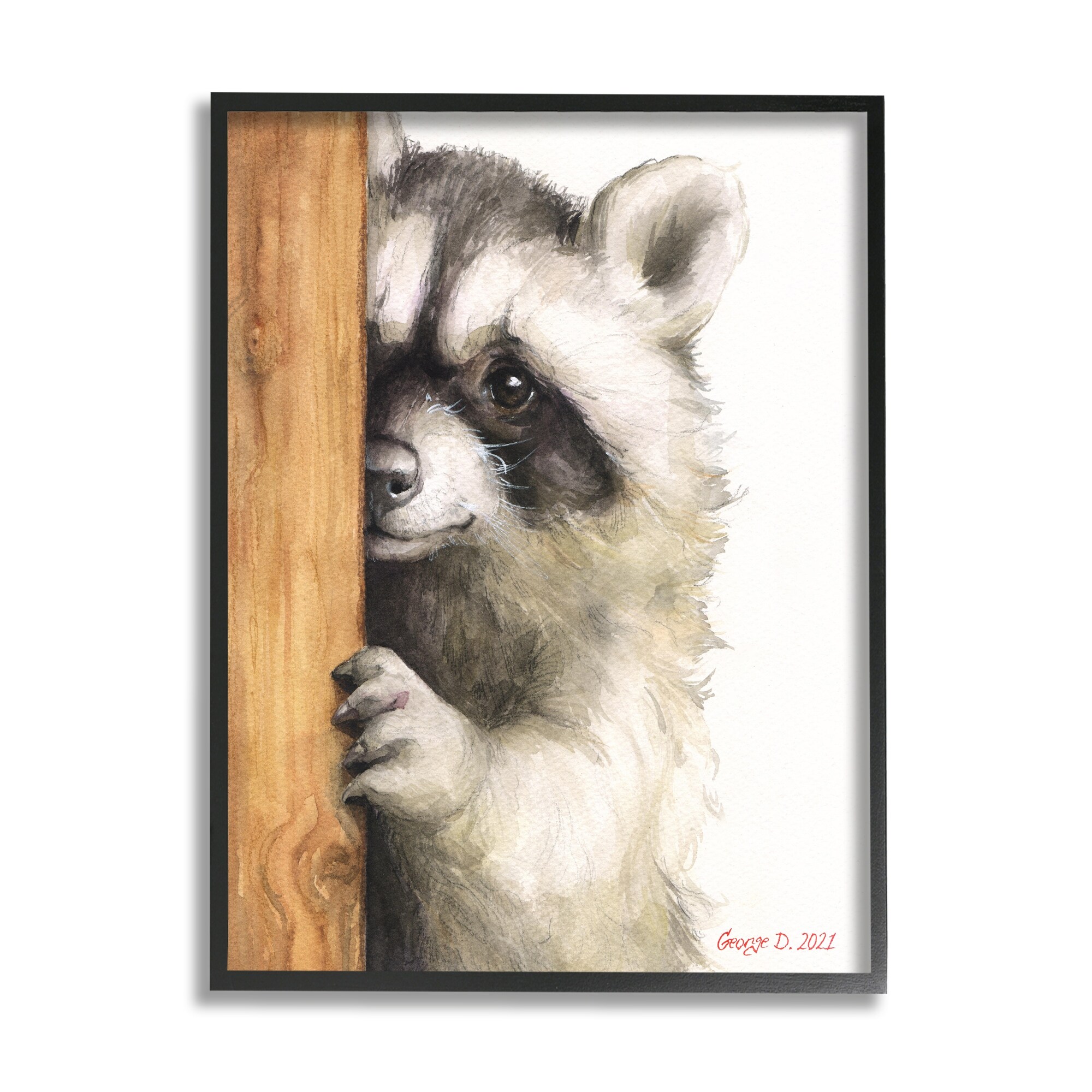Stupell Industries Peering Raccoon Cute Smile Watercolor Animal Painting Framed Wall Art, Design by George Dyachenko - Brown