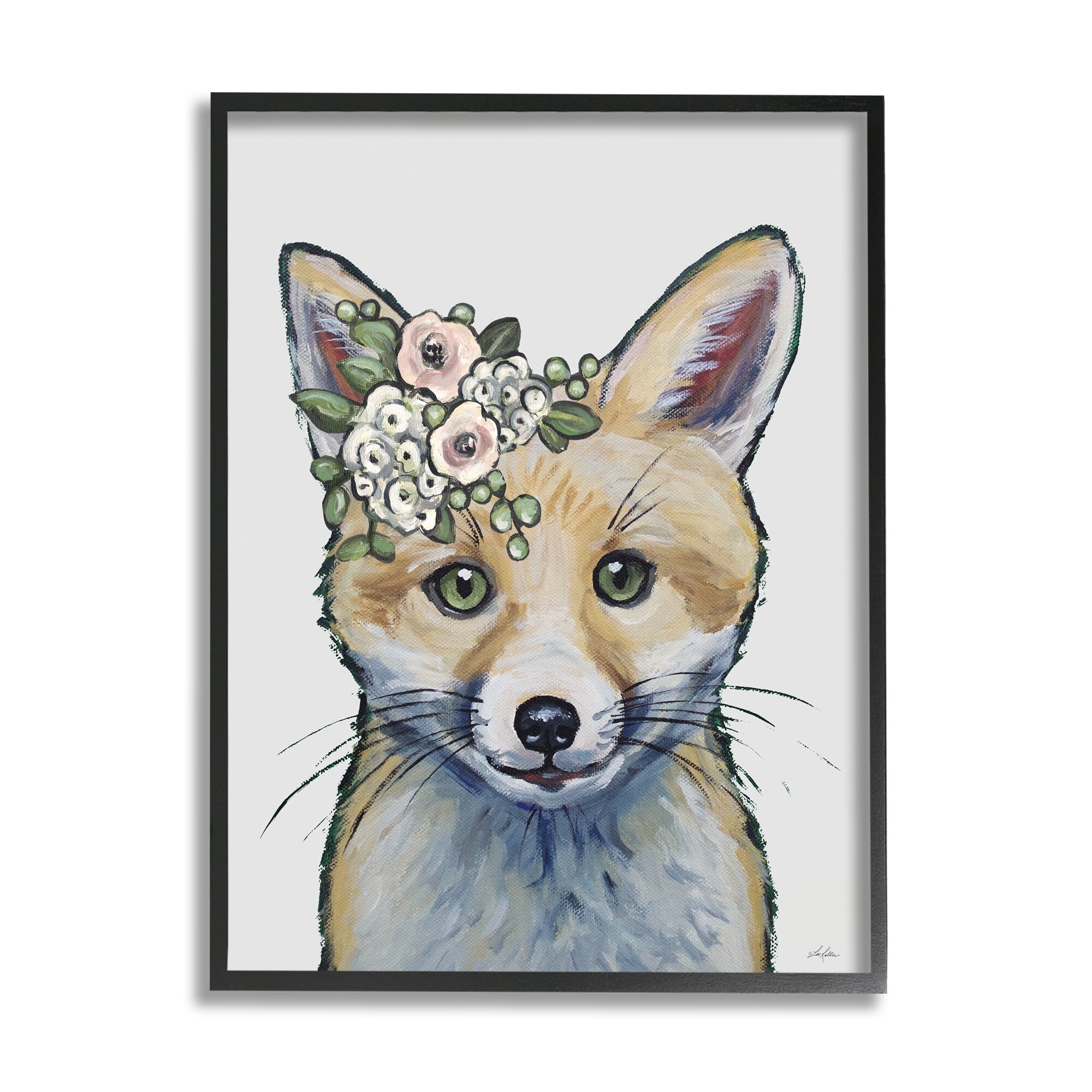 Stupell Industries Smiling Fox Floral Blossom Garland Framed Giclee Art by Lee Keller