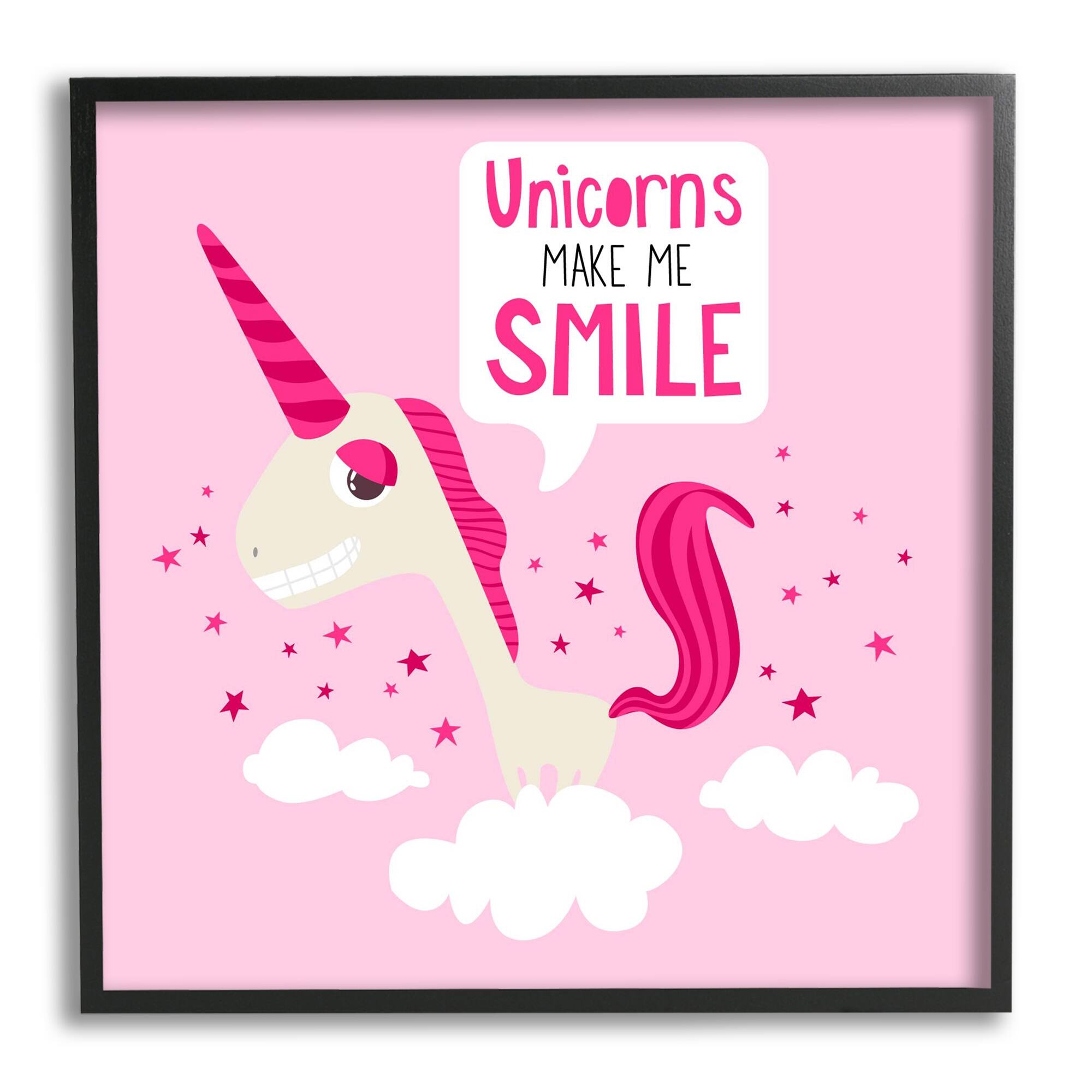 Stupell Unicorns Make Me Smile Phrase Happy Pink Unicorn Framed Wall Art