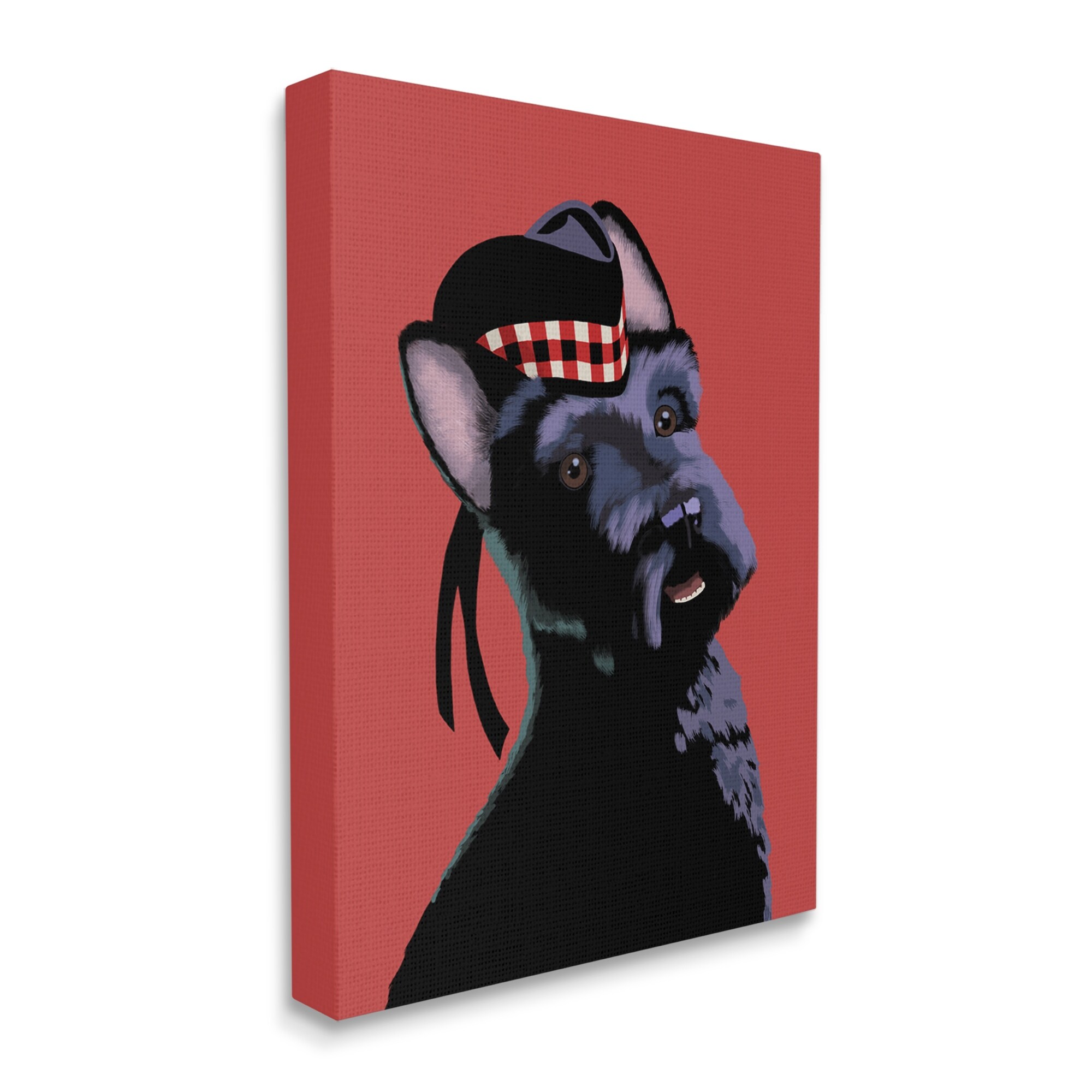 Stupell Industries Smiling Scottish Terrier in Red Plaid Hat Canvas Wall Art