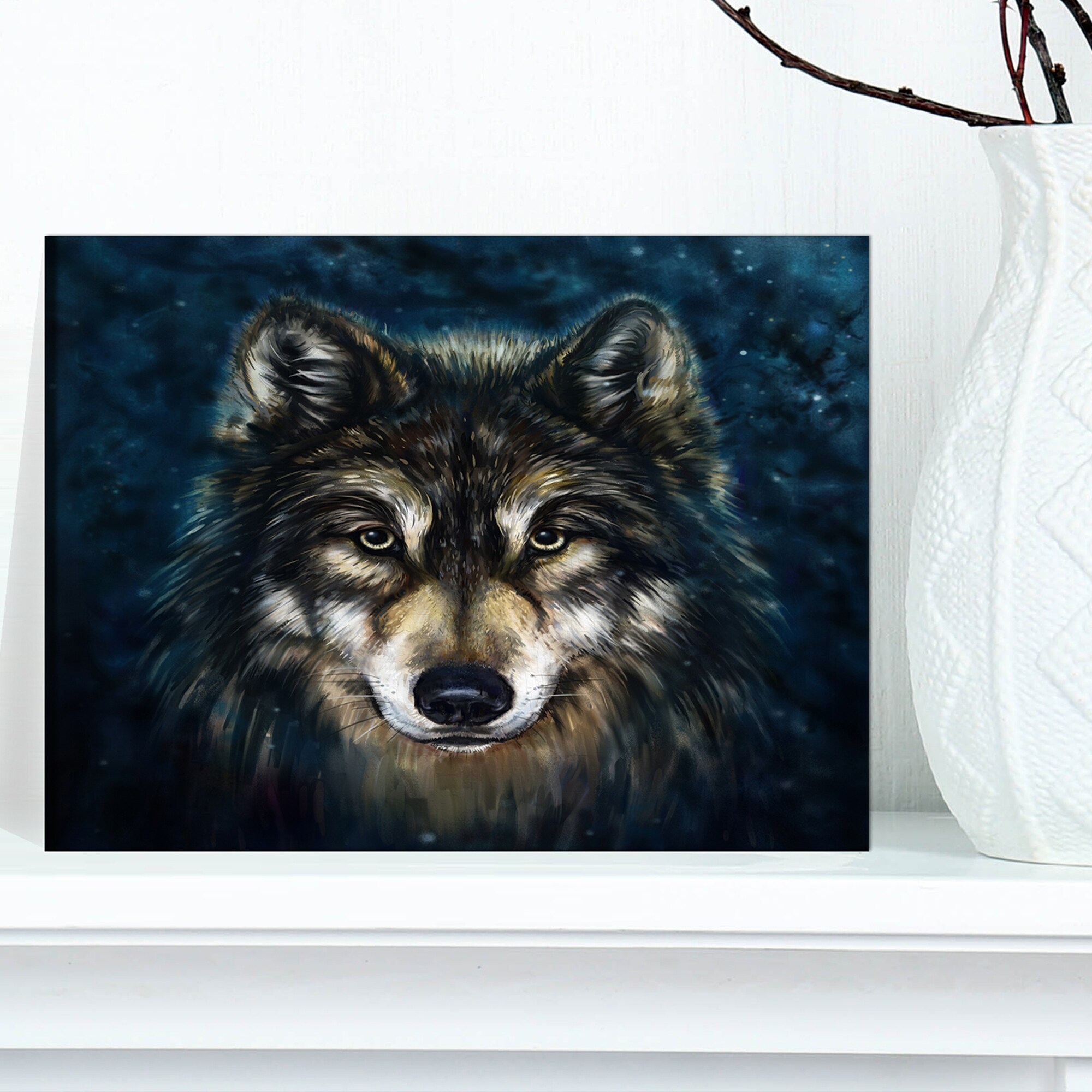Designart "Smiling Wolf" Animal Wall Art Painting