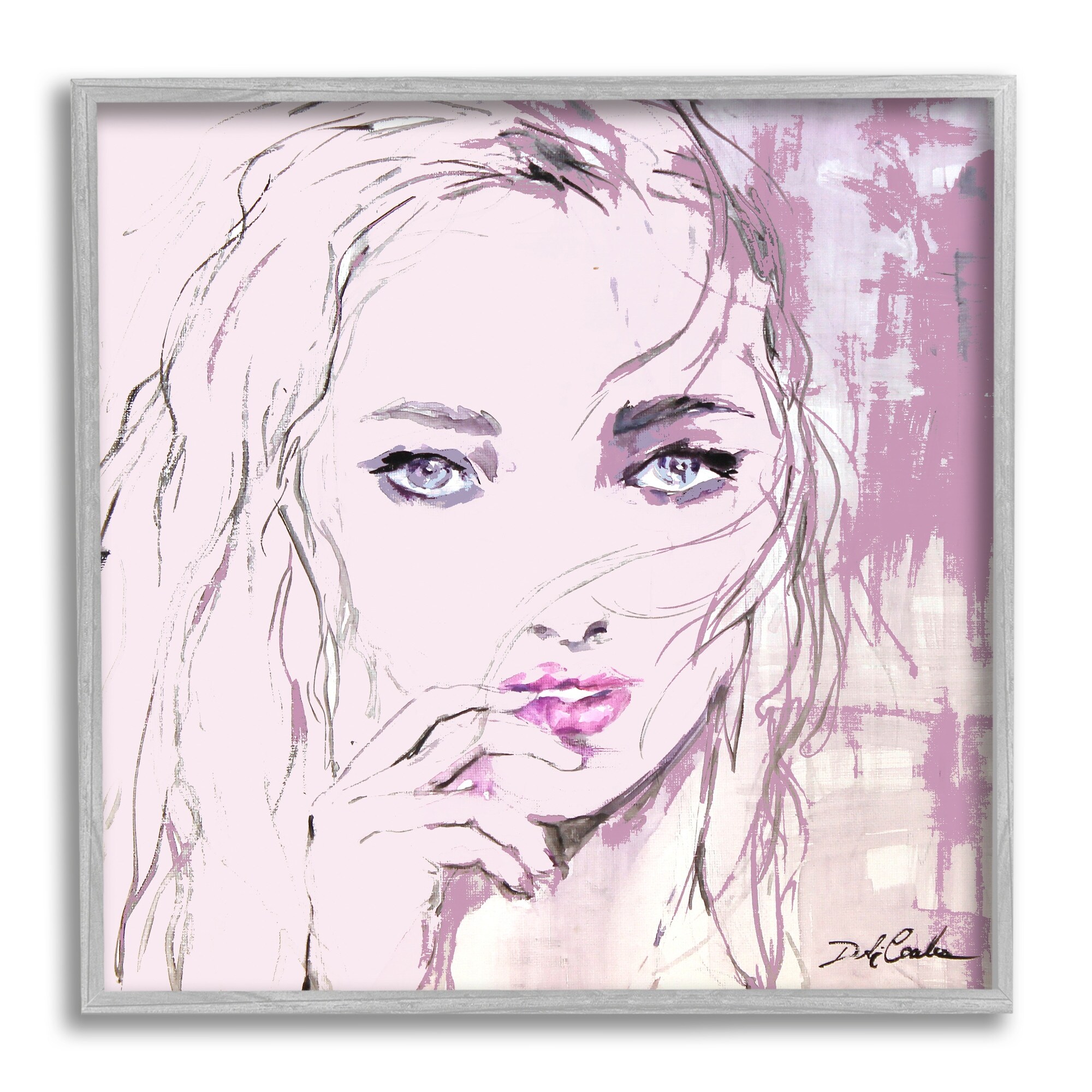 Stupell Industries Trendy Girl Smiling Face Portrait Framed Giclee Texturized Wall Art, Design By Debi Coules