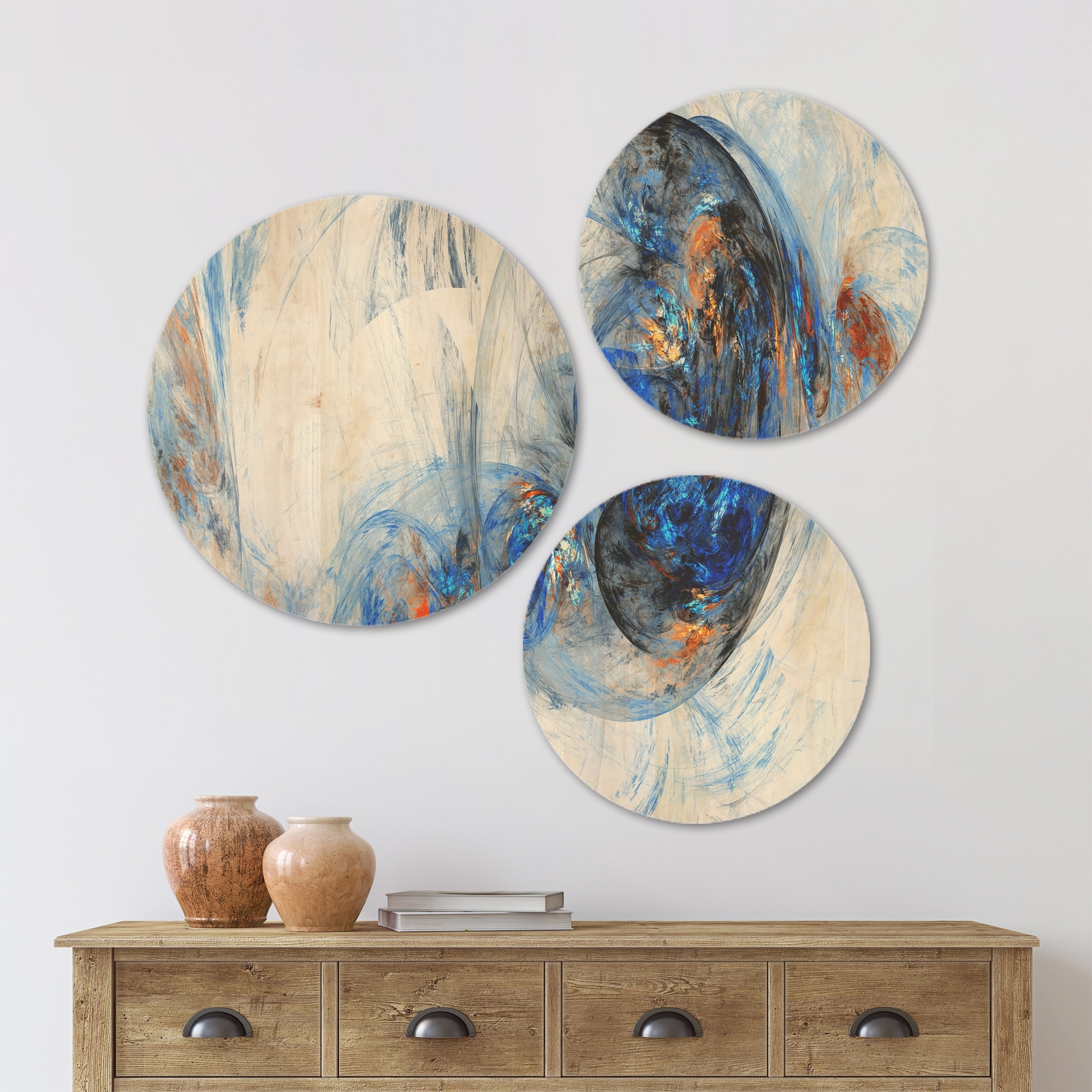Designart 'Colored Smoke Dark Blue' Abstract Wood Wall Art Set of 3 Circles