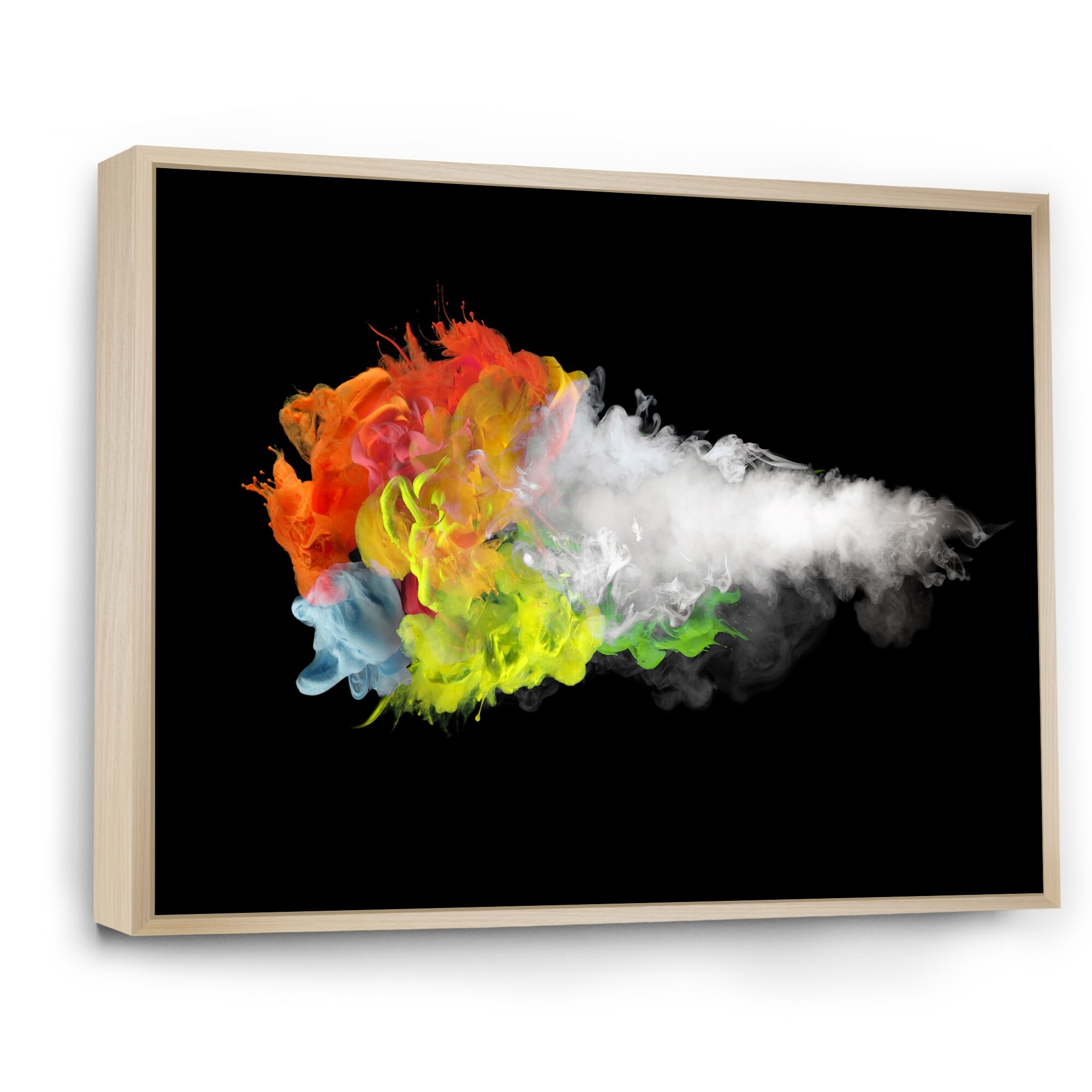 Designart "White Smoke With Vibrant Colours II" Modern Framed Canvas Wall Art Print