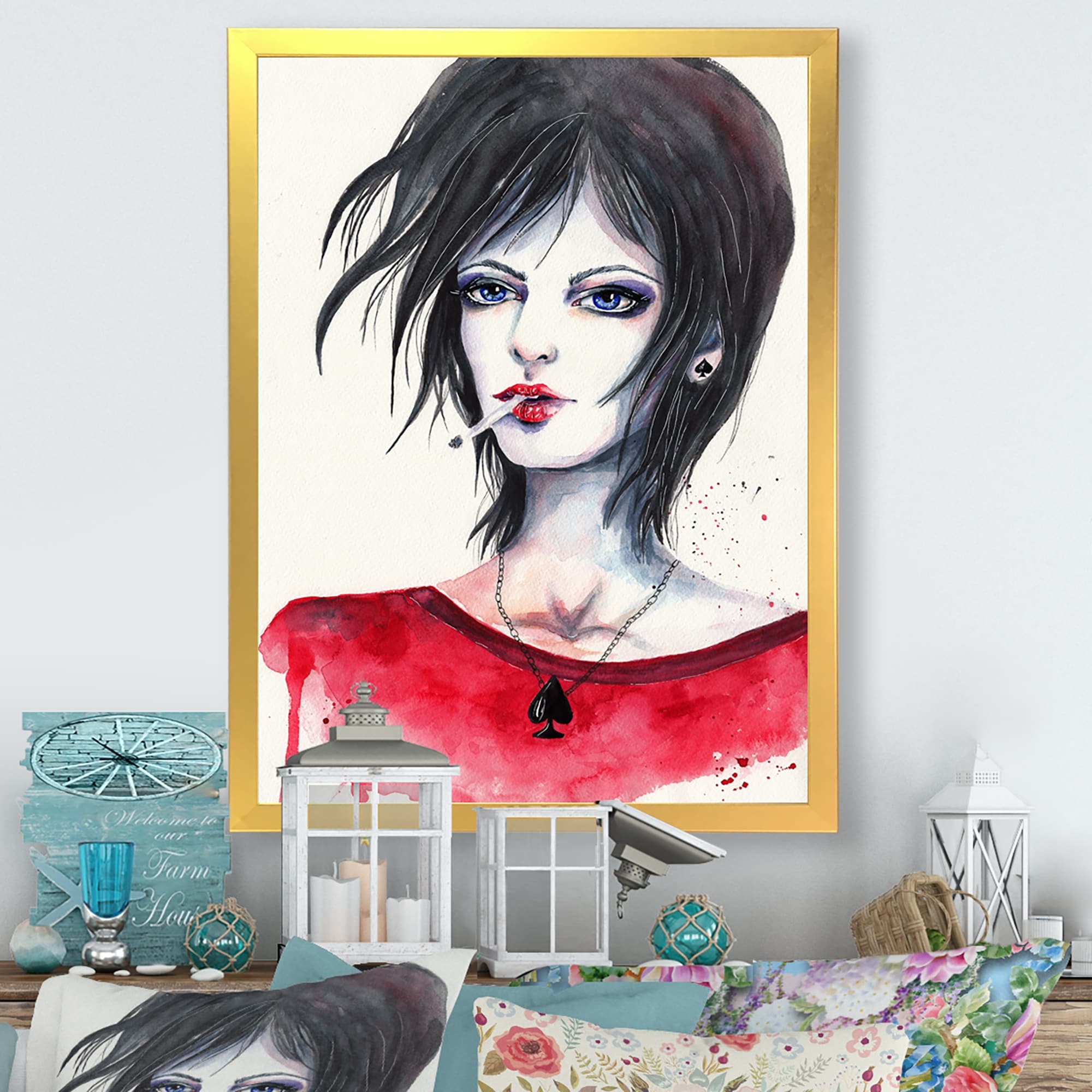 Designart "Portrait Of a Grunge Smoking Girl" Vintage Framed Art Print