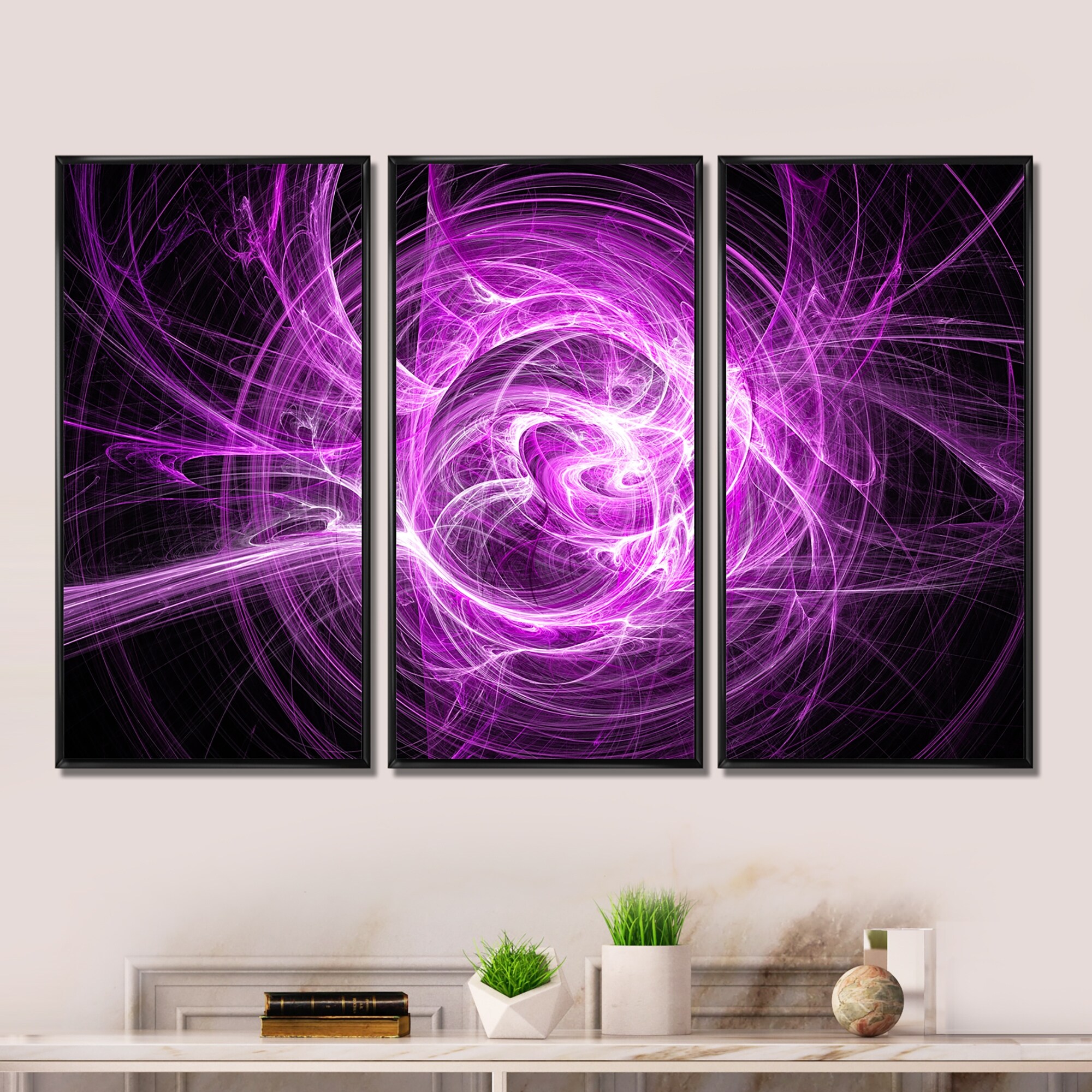 Designart "Colored Smoke Purple" Abstract Framed Canvas Wall Art Set of 3 - 4 Colors of Frames