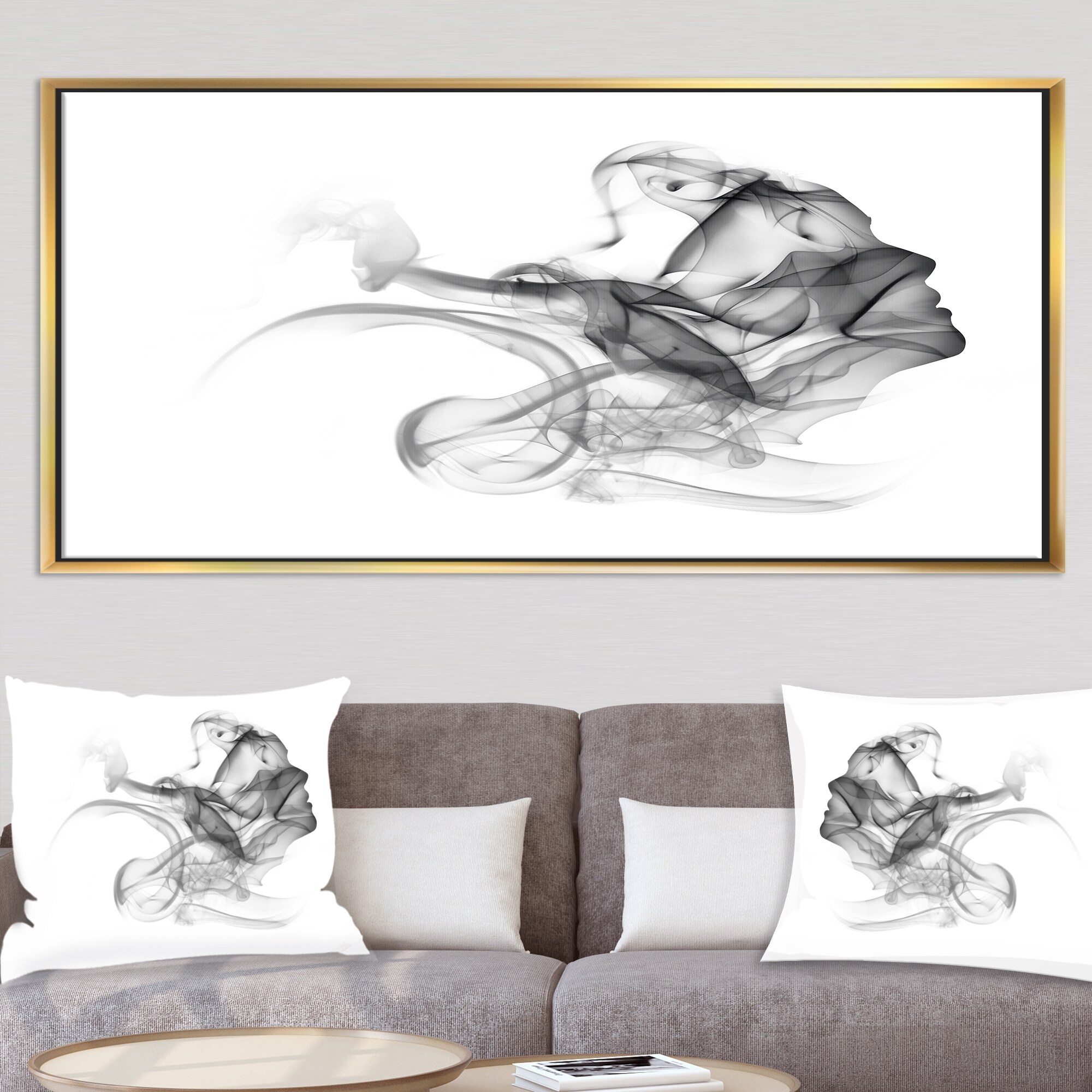 Designart "Woman and Smoke Double Exposure" Portrait Framed Canvas Art Print