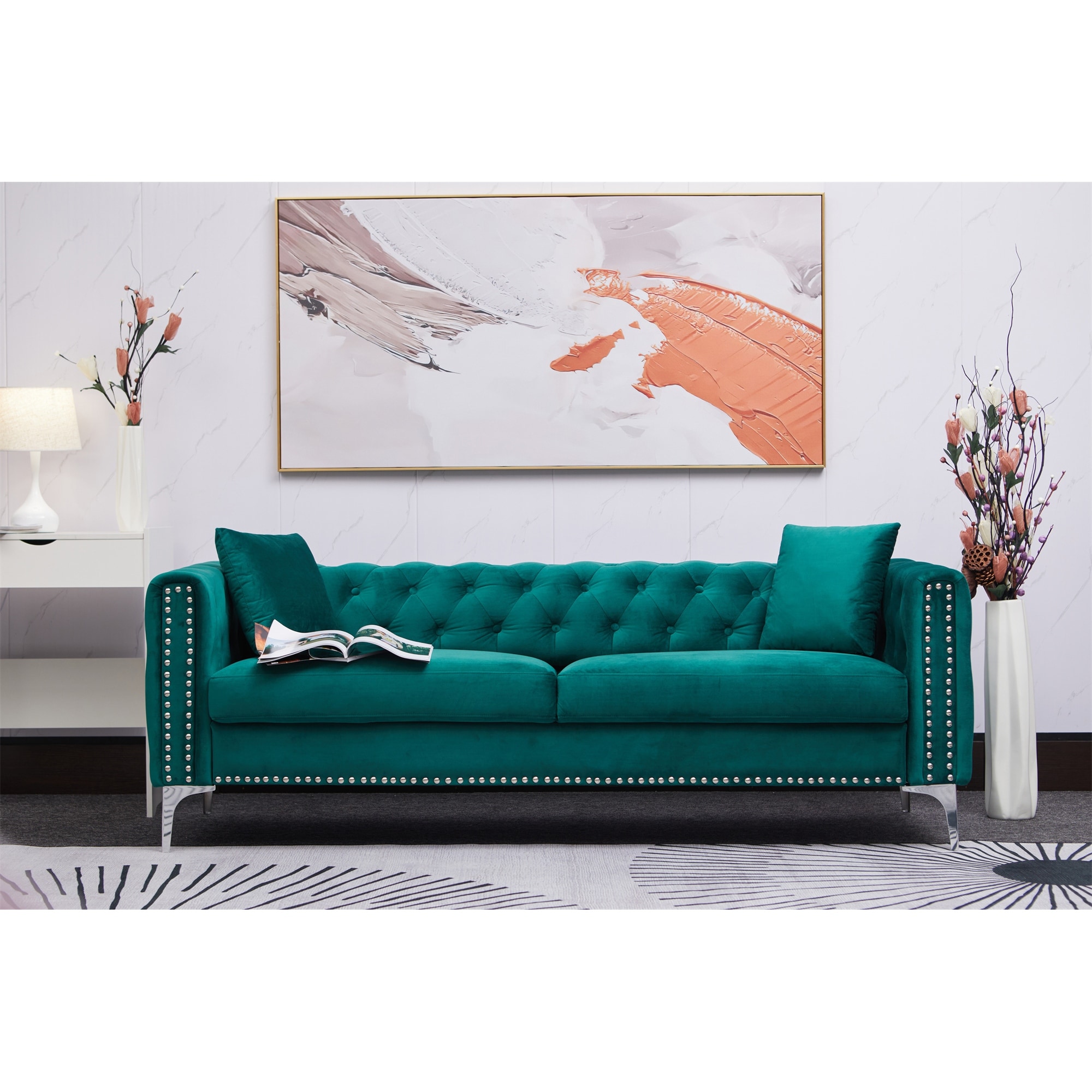 Modern Velvet fabric sofa 71" - Emerald