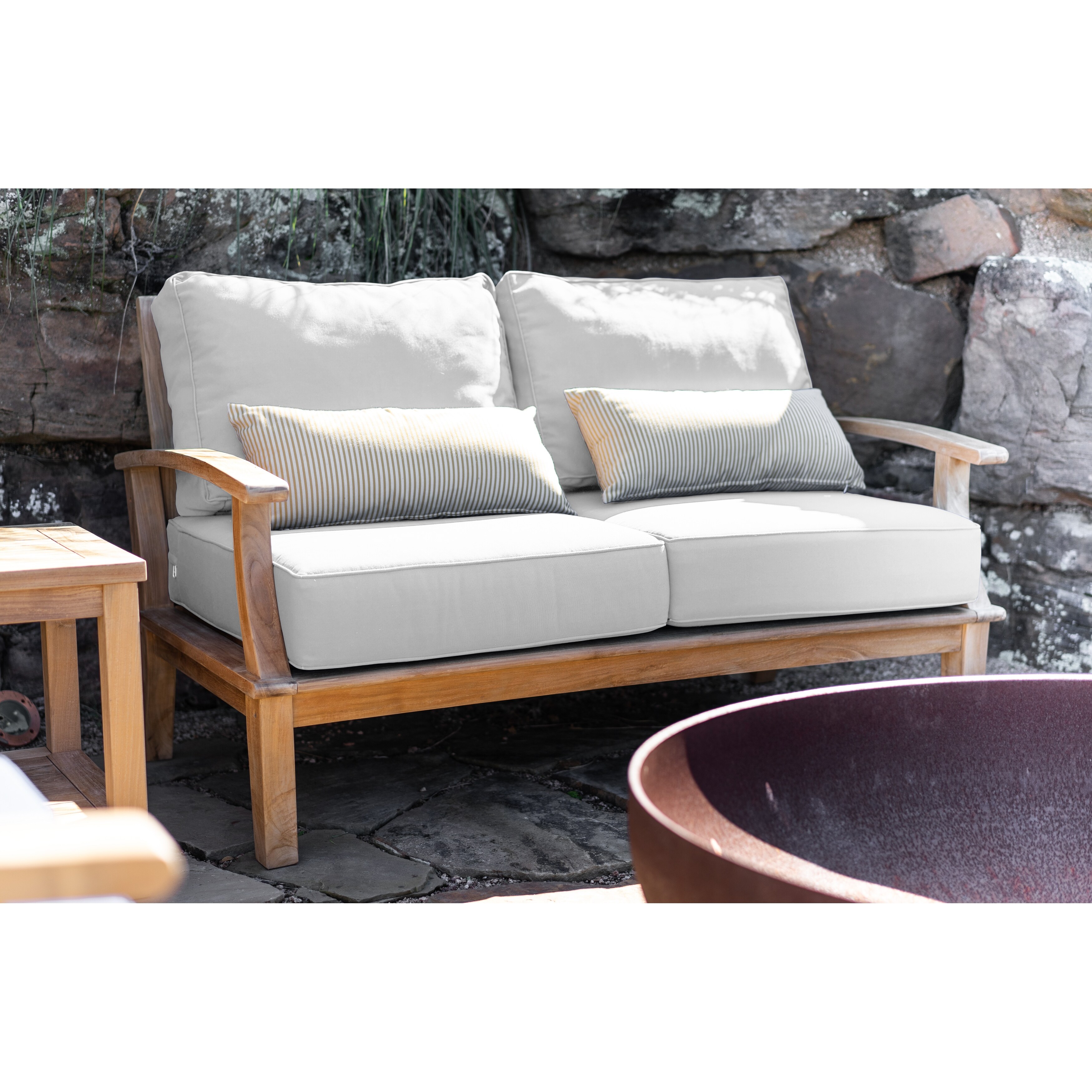 Laurel Tan Teak 57" Outdoor Sofa with Cushions