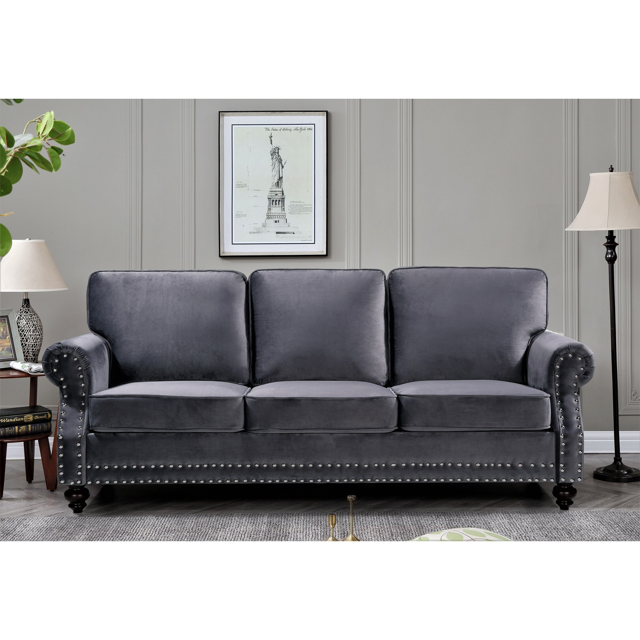 Suffield Traditional Velvet Nailhead Sofa
