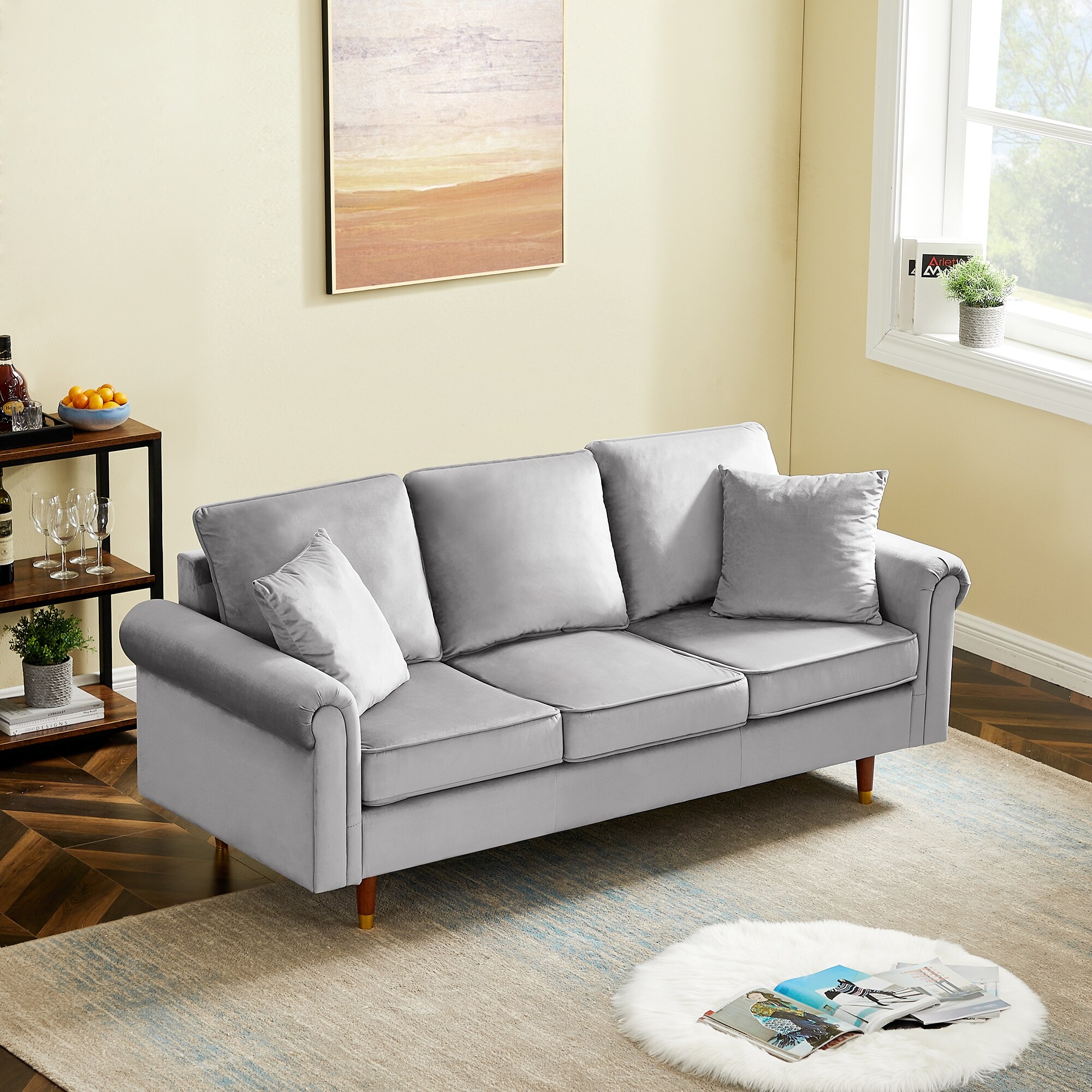 19" Seat Height Velvet Modern Chic Sofa Couch