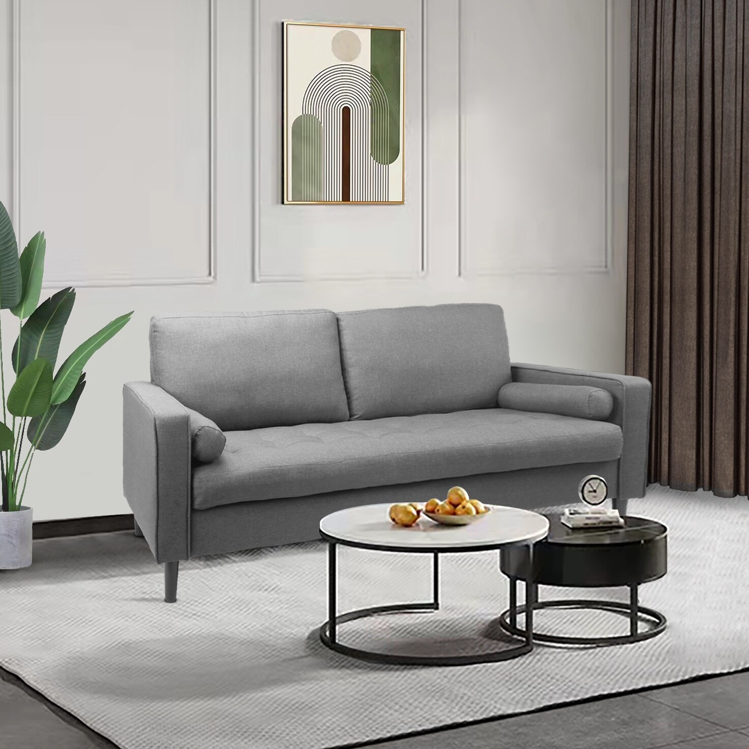 Modern Fabric Sofa with Rounded Arms and Attached Cushions